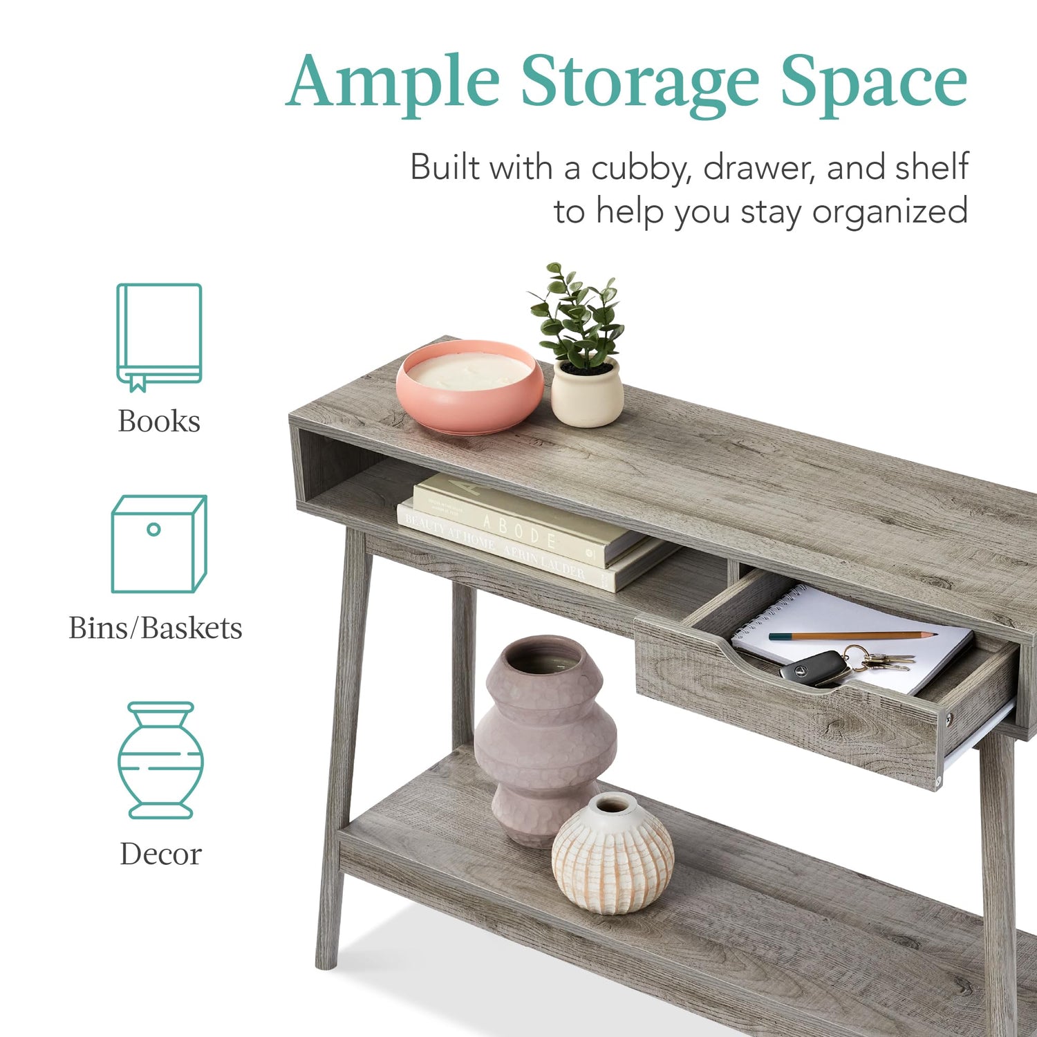 Best Choice Products Mid-Century Modern Console Table, Sofa Table, Accent Furniture for Hallway, Living Room, Entryway Foyer Space-Saving w/Cubby, Drawer, Lower Storage Shelf - Gray