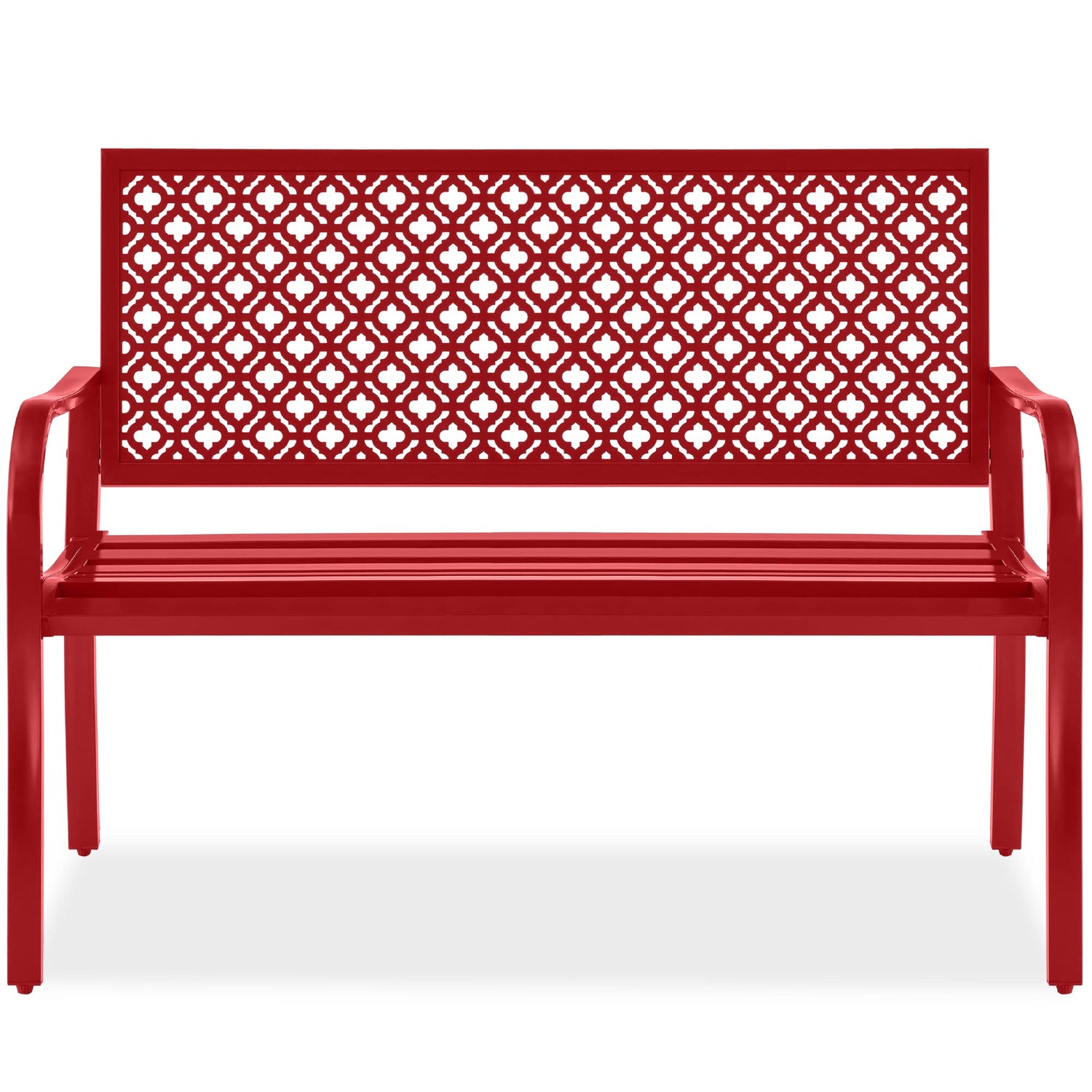 Best Choice Products Outdoor Bench 2-Person Metal Steel Benches Furniture for Garden, Patio, Porch, Entryway w/Geometric Backrest, 790lb Capacity - Rose Red