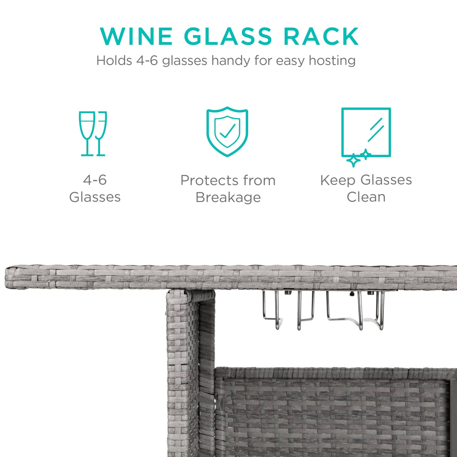 - WINE GLASS RACKS: Includes 2 sets of rails for hanging wine glasses, allowing easy access to extra drinks when requested; OVERALL DIMENSIONS: 54.5"(L) x 18.5"(W) x 36.4"(H)