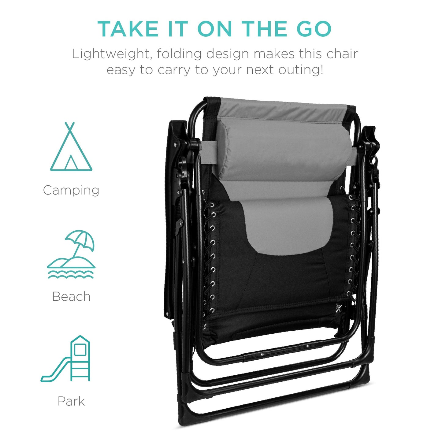 - TAKE IT ON THE GO: A lightweight, folding design makes this chair easy to enjoy at home, the beach, the park, or your next tailgate