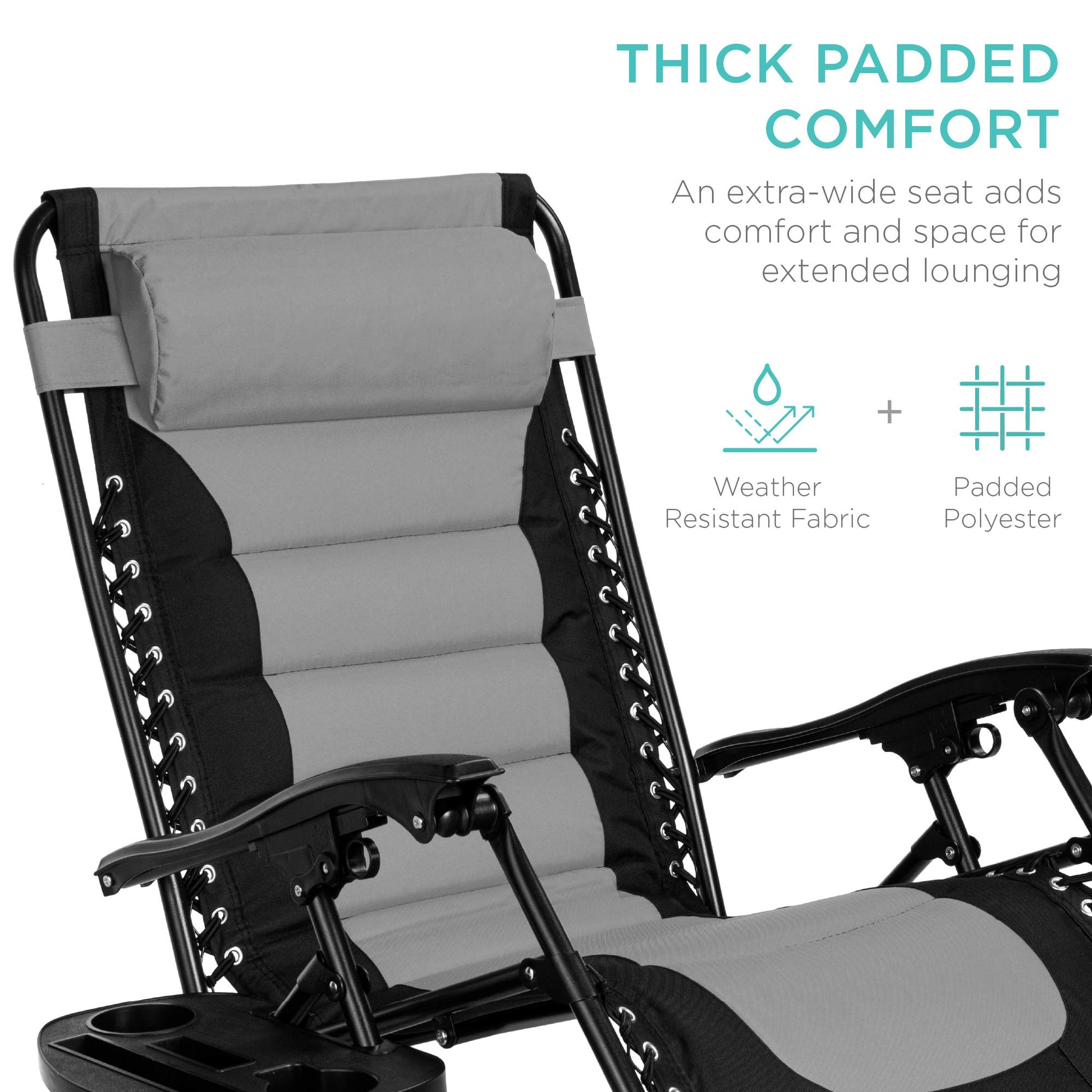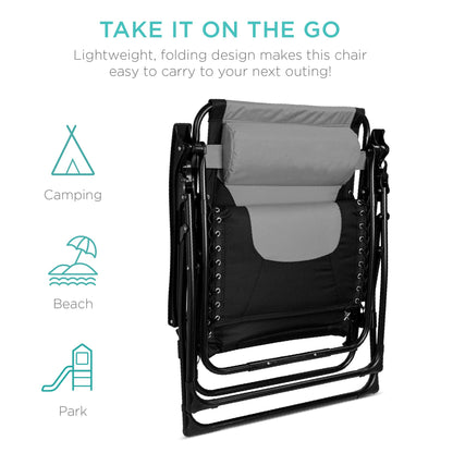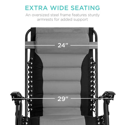Best Choice Products Oversized Padded Zero Gravity Chair, Folding Outdoor Patio Recliner, XL Anti Gravity Lounger for Backyard w/Headrest, Cup Holder, Side Tray, Polyester Mesh - Black/Gray