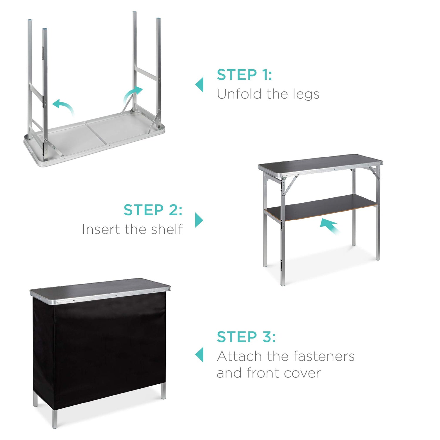 Best Choice Products Portable Pop-Up Bar Table for Indoor, Outdoor, Party, Picnic, Tailgate, Entertaining w/Carrying Case, Storage Shelf, Removable Skirt