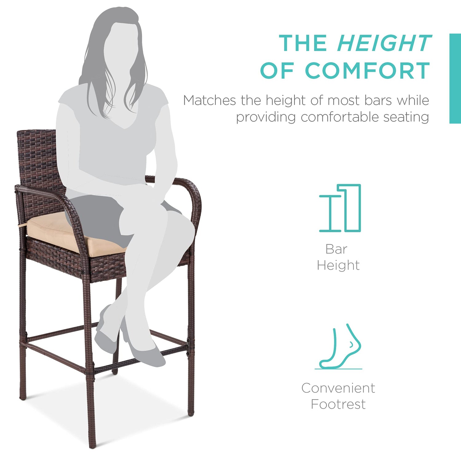 - ELEGANT AND FUNCTIONAL: These wicker bar stools are made with sturdy footrest bars for further comfort, as well as a glossy finish for elegant, inviting style on your patio or balcony; OVERALL DIMENSIONS: 20"(L) x 18.75"(W) x 46"(H); WEIGHT CAPACITY: 250 lbs.