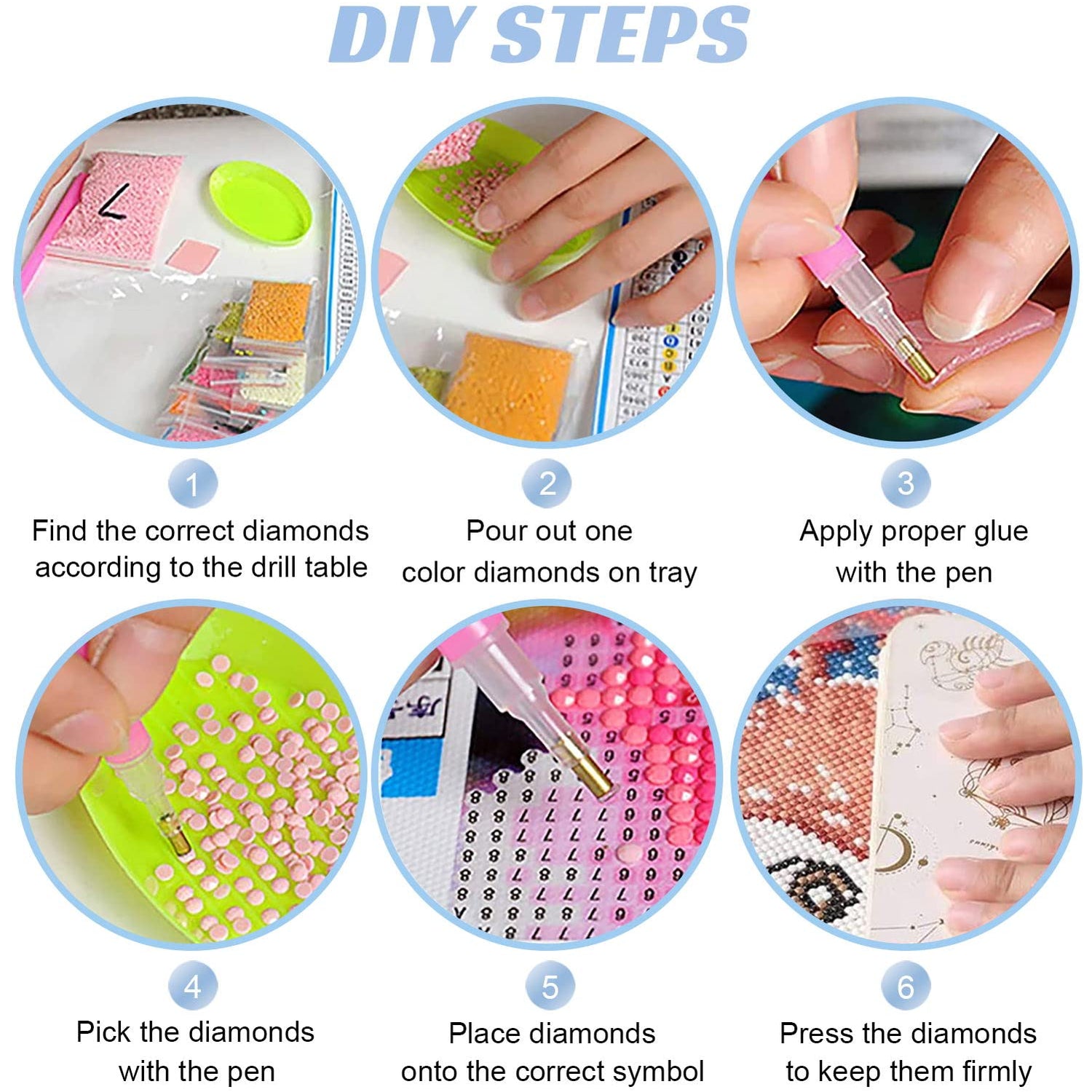 - PACKAGE CONTENTS:1*HD print canvas,1*pen,1* 3-drill pick,1* 6-drill pick,2*glue, 1*enlarged plate,8*spare ziplock bags and sufficient number of round diamonds.
