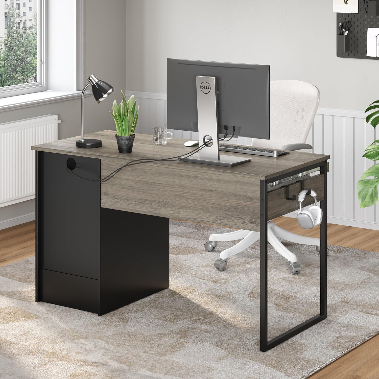 Bestier 48” Computer Desk with Drawers, Office Desk with Storage, Industrial Wood Writing Desk with File Drawer, Keyboard Tray & 2 Hooks for Home Office & Studio, Gray