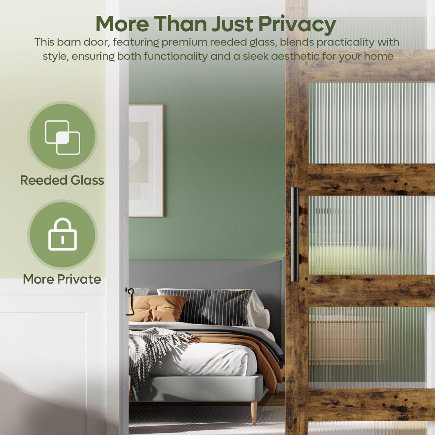 - Dependable Durability and Resilience: The glass barn door comes with 5 panels of fluted tempered glass, offering a solution that is both explosion-proof and scratch-resistant. The sturdy door frames are immune to rust and corrosion, guaranteeing longevity.