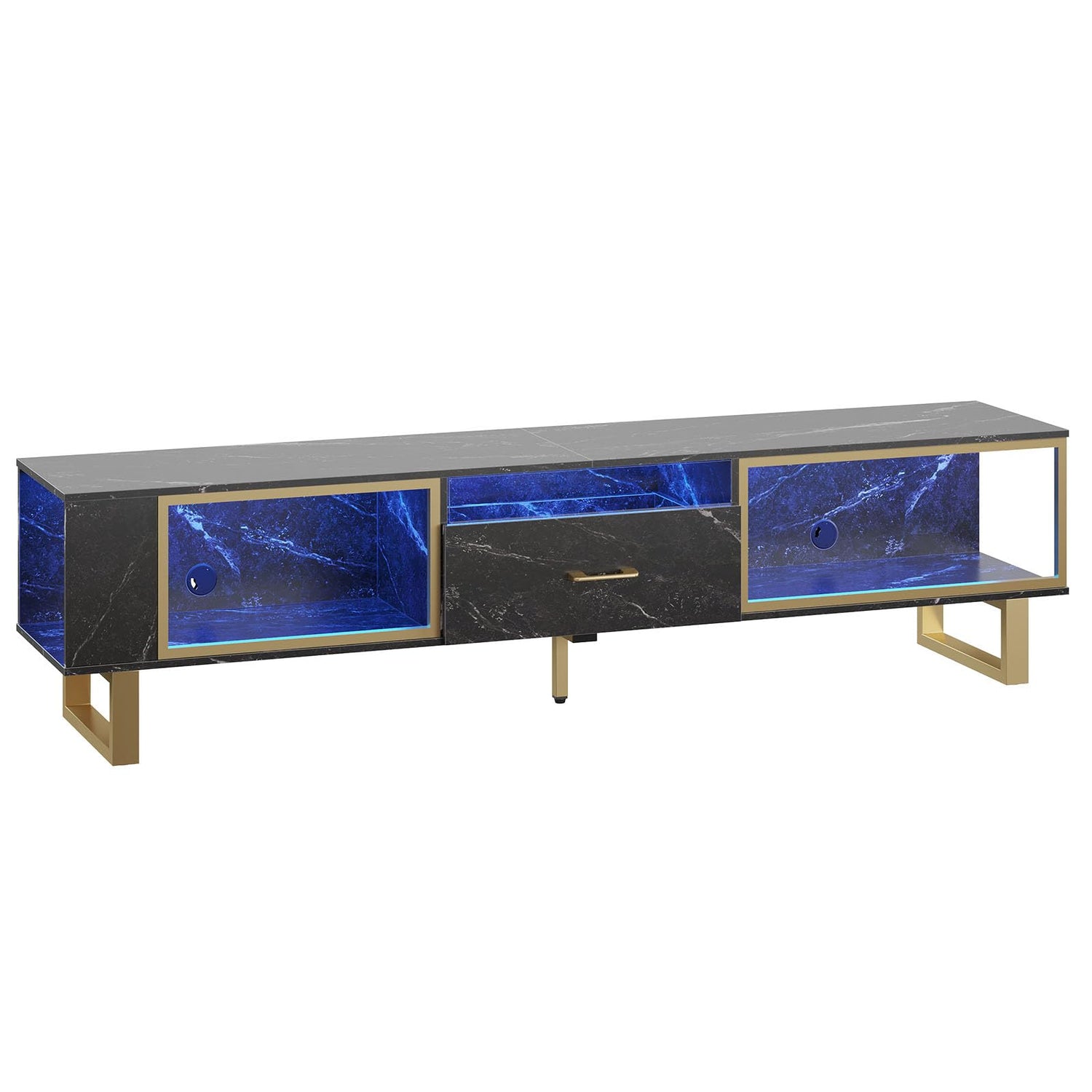 Bestier 80 Inch TV Stand for 65/75/85/90 Inch TVs, LED Gaming Entertainment Center with Open Storage and Half-Glass Design Drawer, Modern High Gloss Media Console for Living Room Bedroom, Black Marble