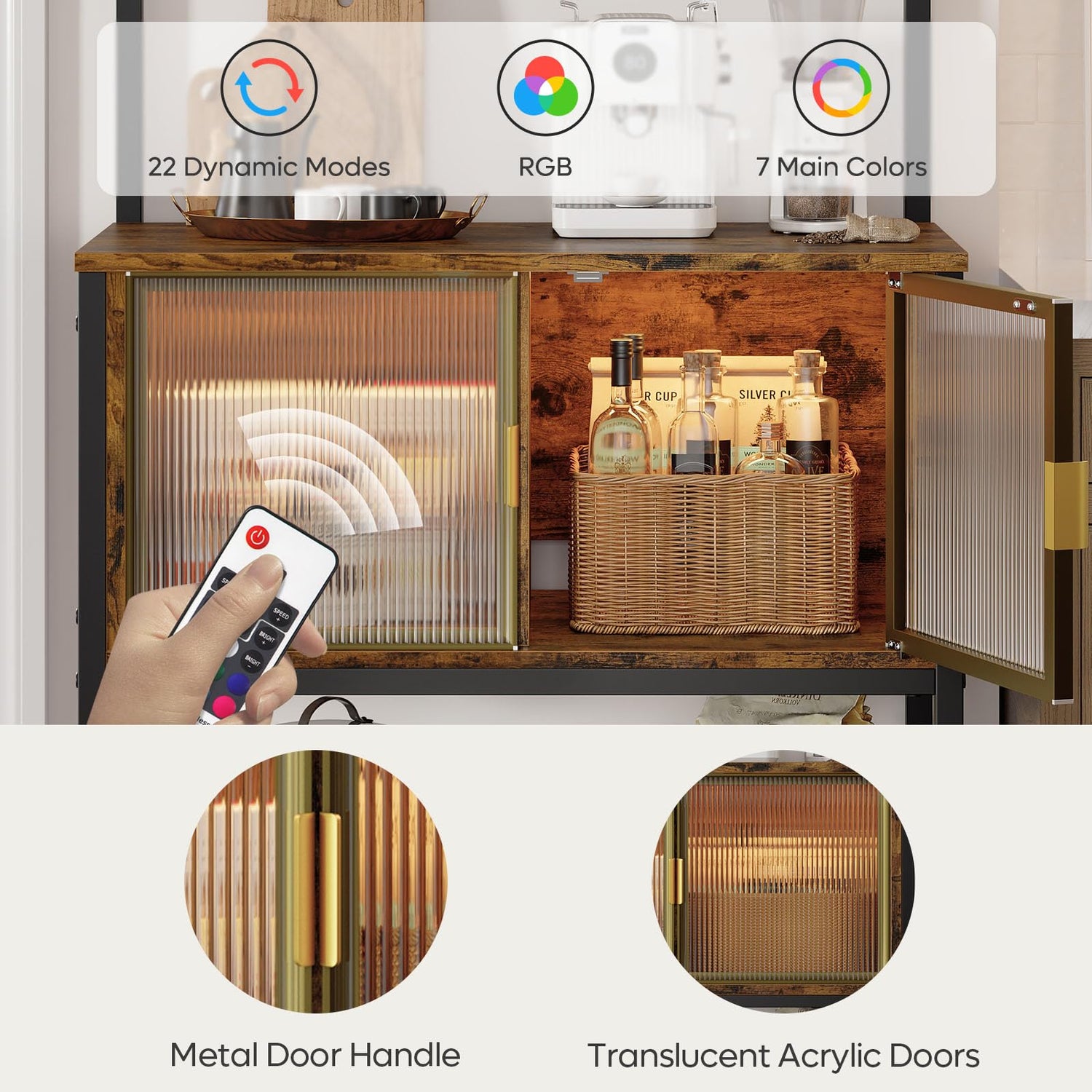 Adding a modern flair to the mix, this bakers rack is equipped with RGB light strips, allowing you to choose from 7 static colours and 22 light modes. This feature not only enhances the ambiance of your living area but also sets the mood for gatherings and celebrations. Moreover, the LED lighting serves a practical purpose, ensuring safe navigation in your home during the night.