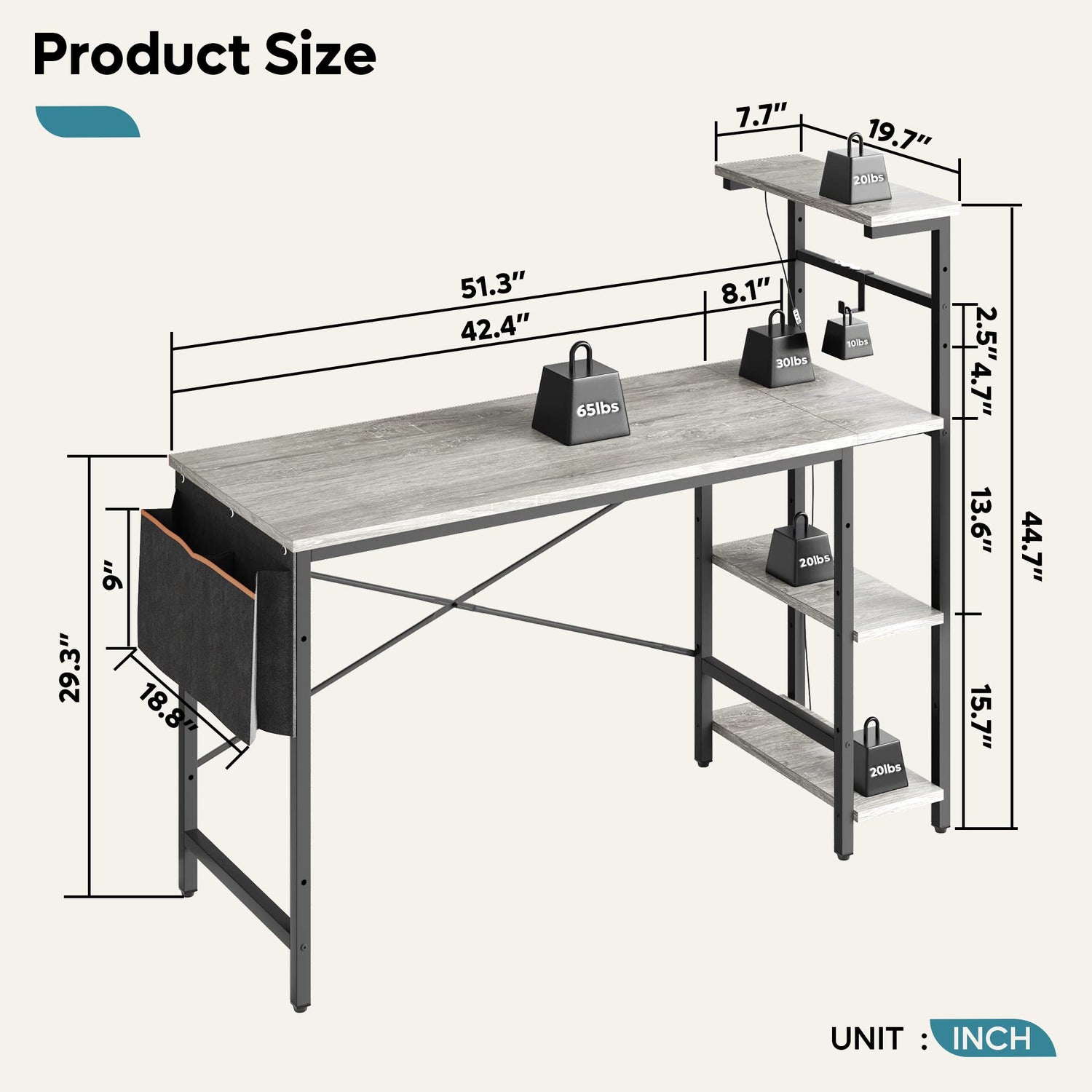 - More Design: The home office desks is designed with 4 tier shelf and provide ample storage space for your necessities, such as files, books, and more. Equipped with side storage bag and hooks to help keep your desk organized. The reversible office desk is suitable for left and right-handed