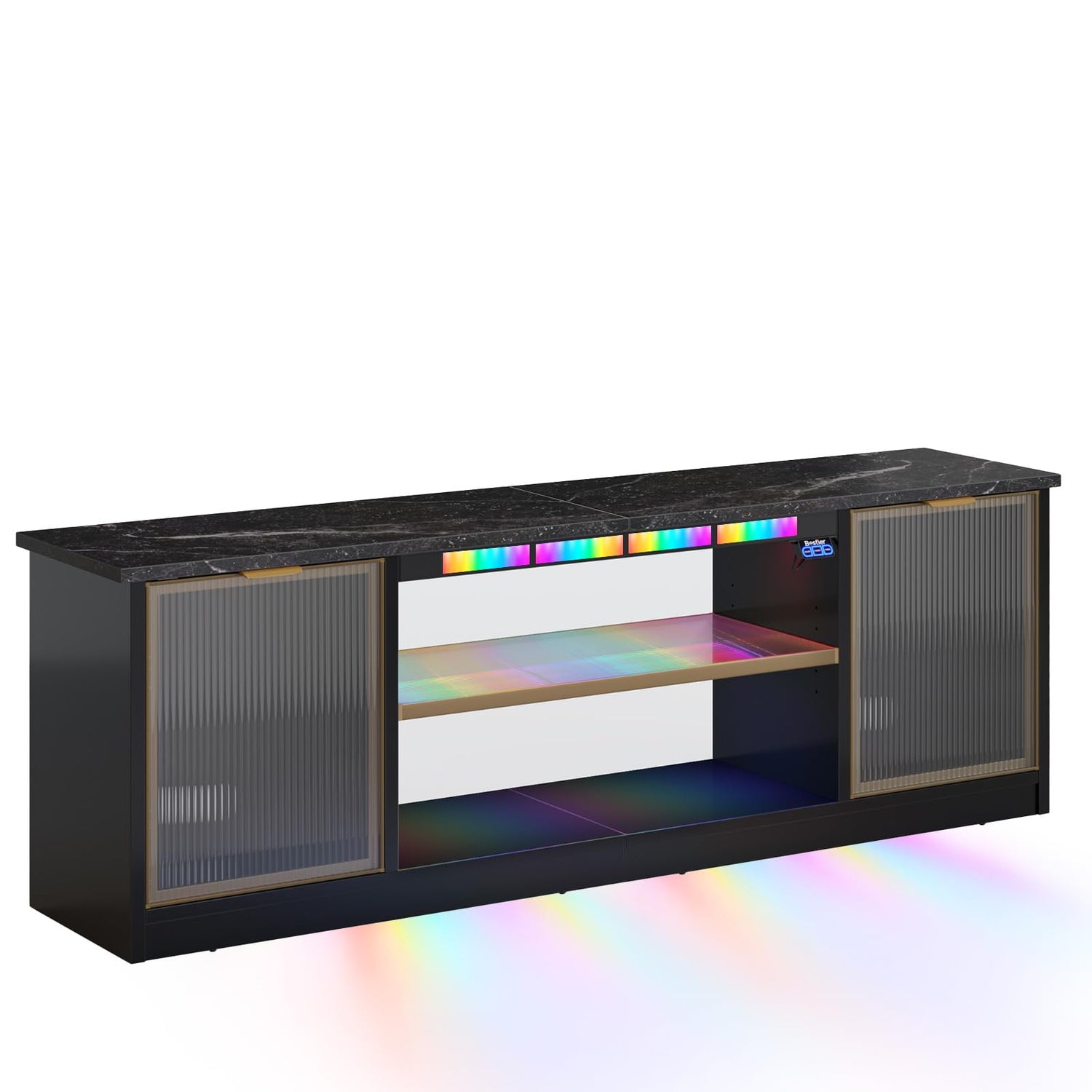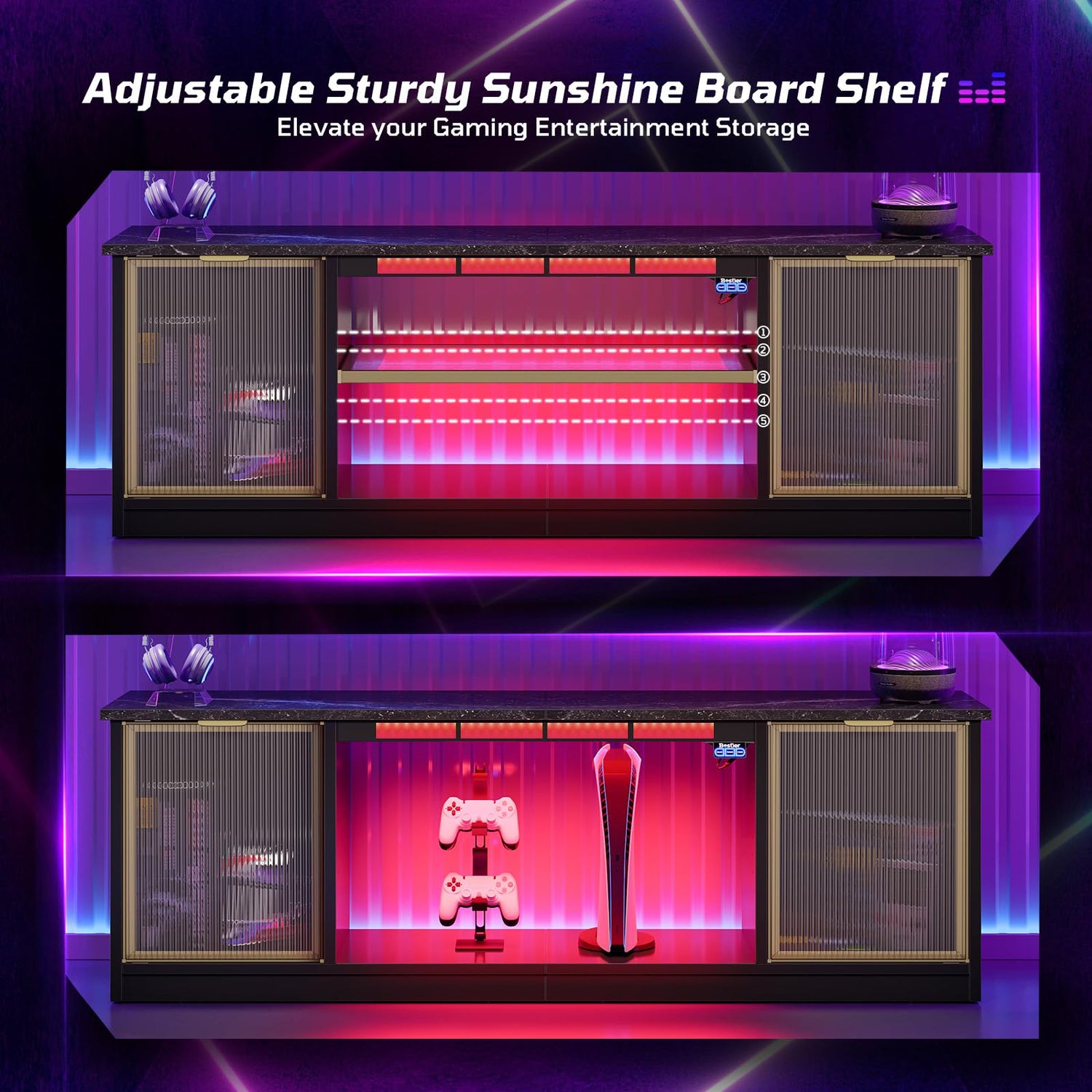 Bestier Gaming TV Stand with Music Sync Light, Flow Vibe Entertainment Center with Storage for PS5 Xbox, RGB LED Party Modes Television Stands for 50/55/60/65 inch TV (Black Marble, 57 inch)