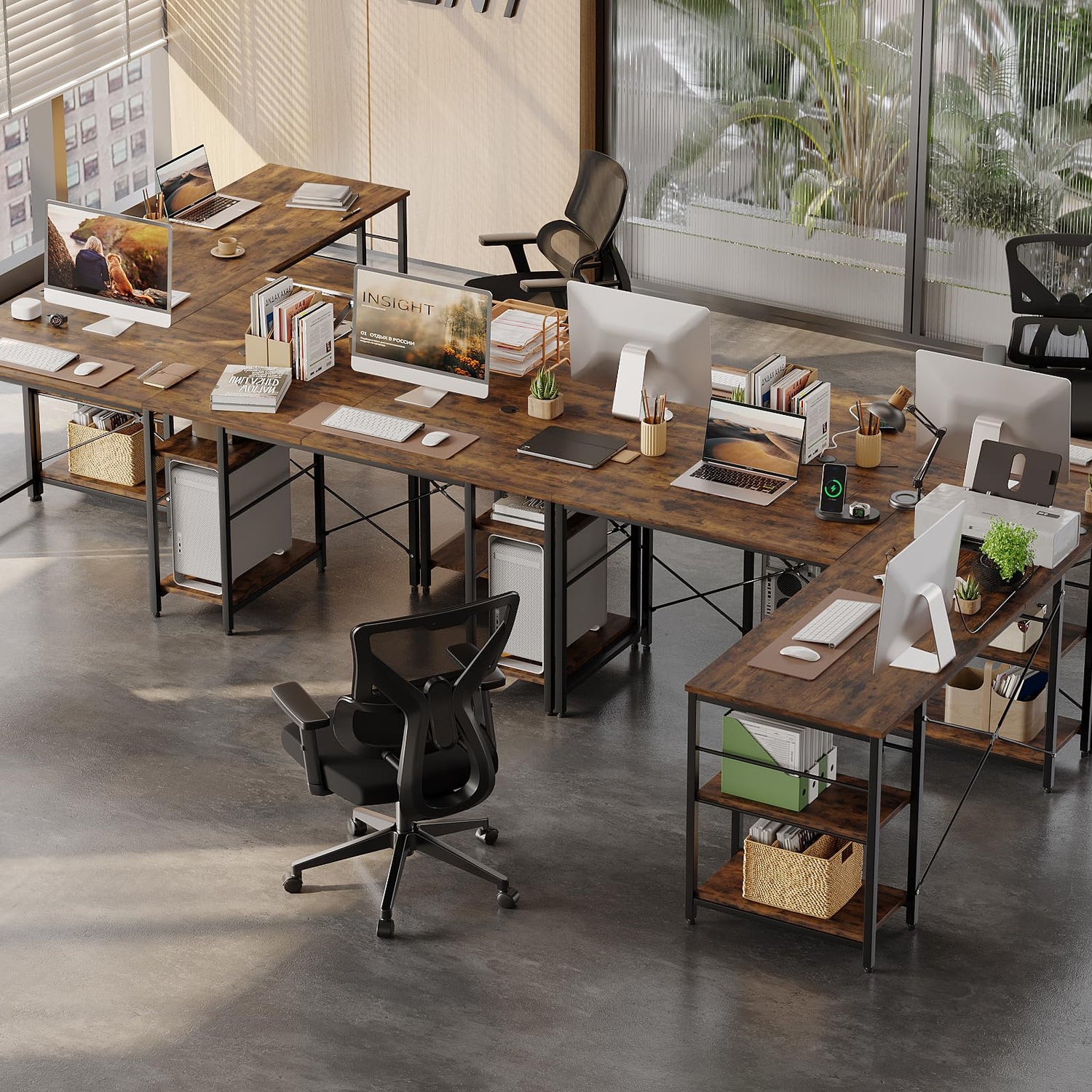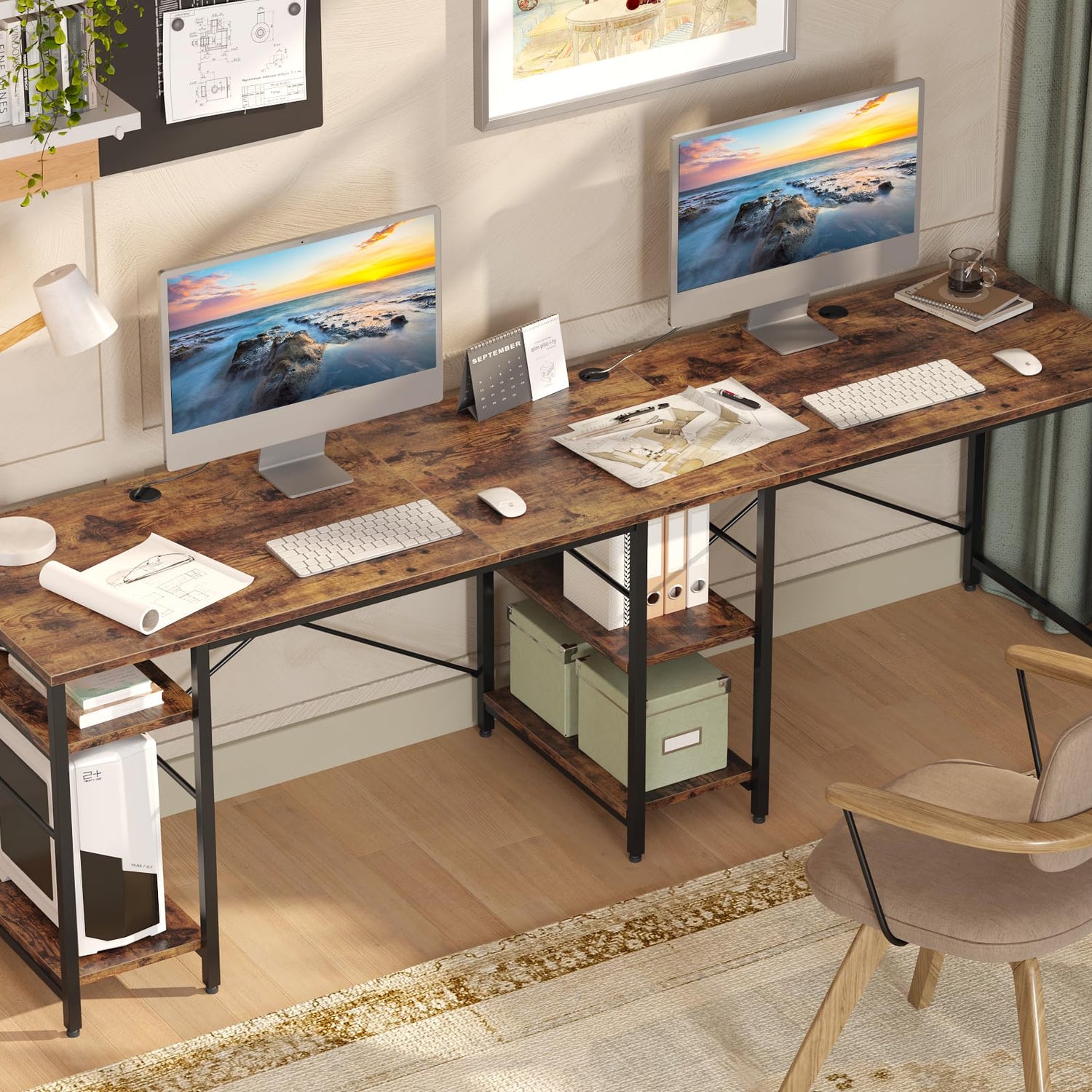 Bestier L Shaped Desk, 95.2 Inch Reversible Corner Computer Desk with Shelves, 2 Person Long Table for Home Office, Large Writing Storage Workstation with 3 Cable Holes, Rustic Brown