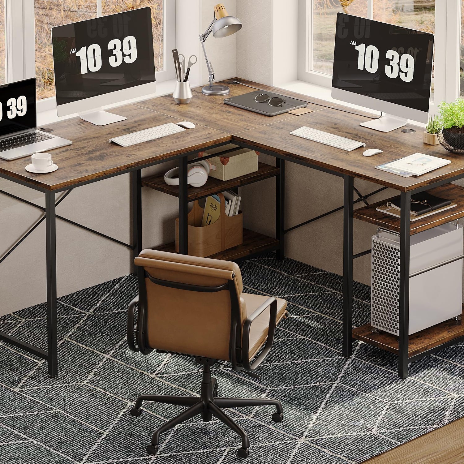 - Flexible Storage Shelves: The shelves under desk can be installed at Right + Middle or Left + Middle when becoming an l-shaped desk; also can be Right + Middle when a long desk.