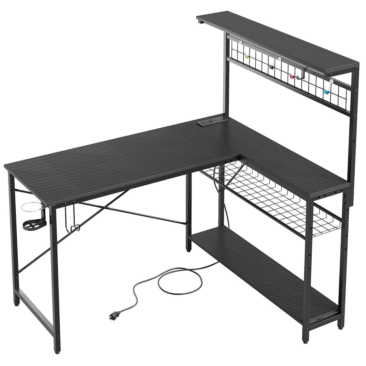 - 【Gaming Desk with Efficient Workspace】 Bestier L-shaped computer desk with top hutch offers ample workspace and versatile 4-tiered storage for efficient organization and enhanced productivity. The upper shelf includes an adjustable metal grid pegboard with a convenient hook, binder clips, and magnetic pieces for tidy display. Unlock a well-organized and stylish workstation with the top shelf, perfect for showcasing and organizing gaming essentials.