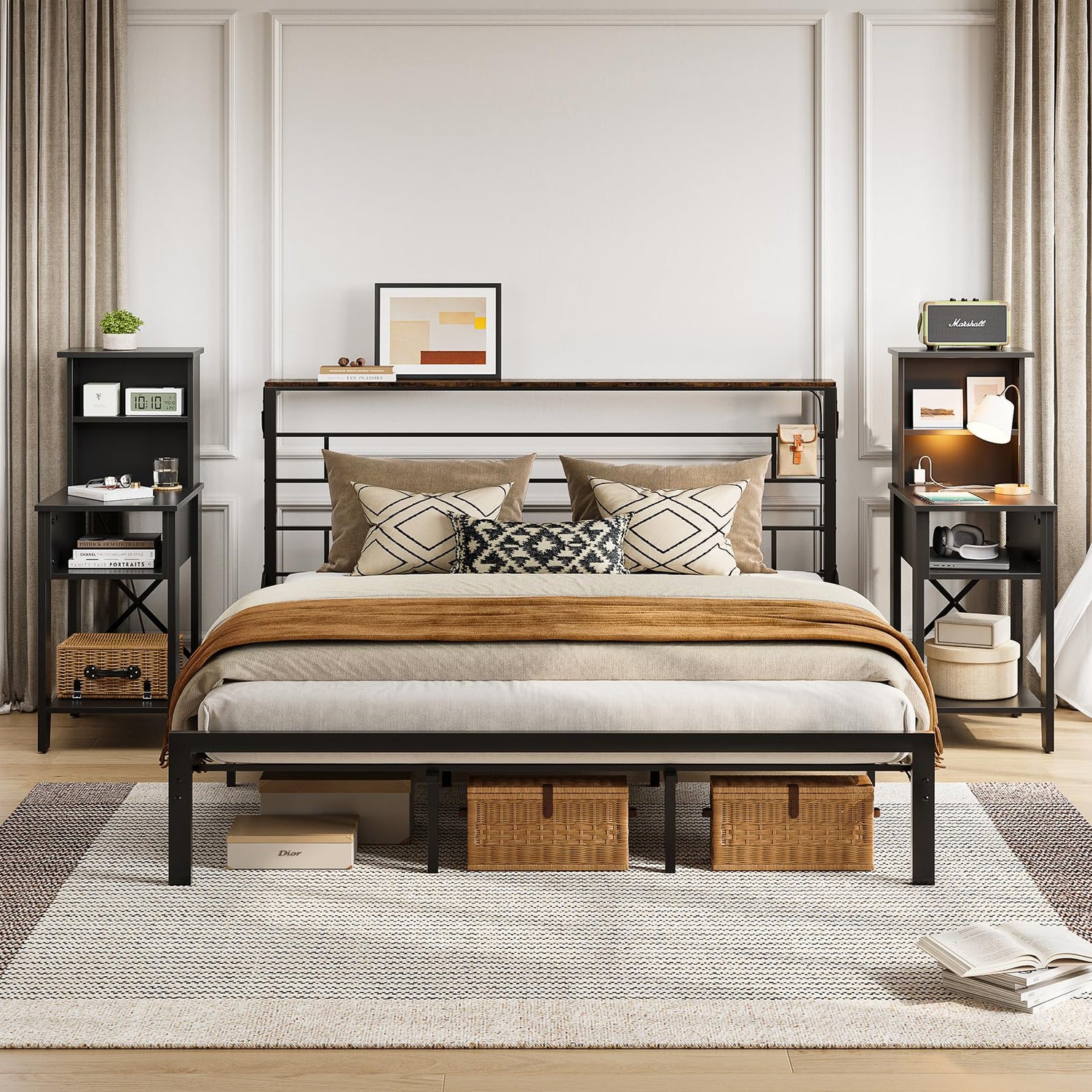- Bedside Table with Charging Station: Upgrade your bedside experience with our side table. Featuring 2 AC outlets and 2 USB ports(Only one end table is equipped with charging station), The end table offers seamless charging for your bedside essentials like lamps, smartphones, tablets, and laptops. Enjoy the convenience of charging your devices while relaxing in bed or on the sofa.