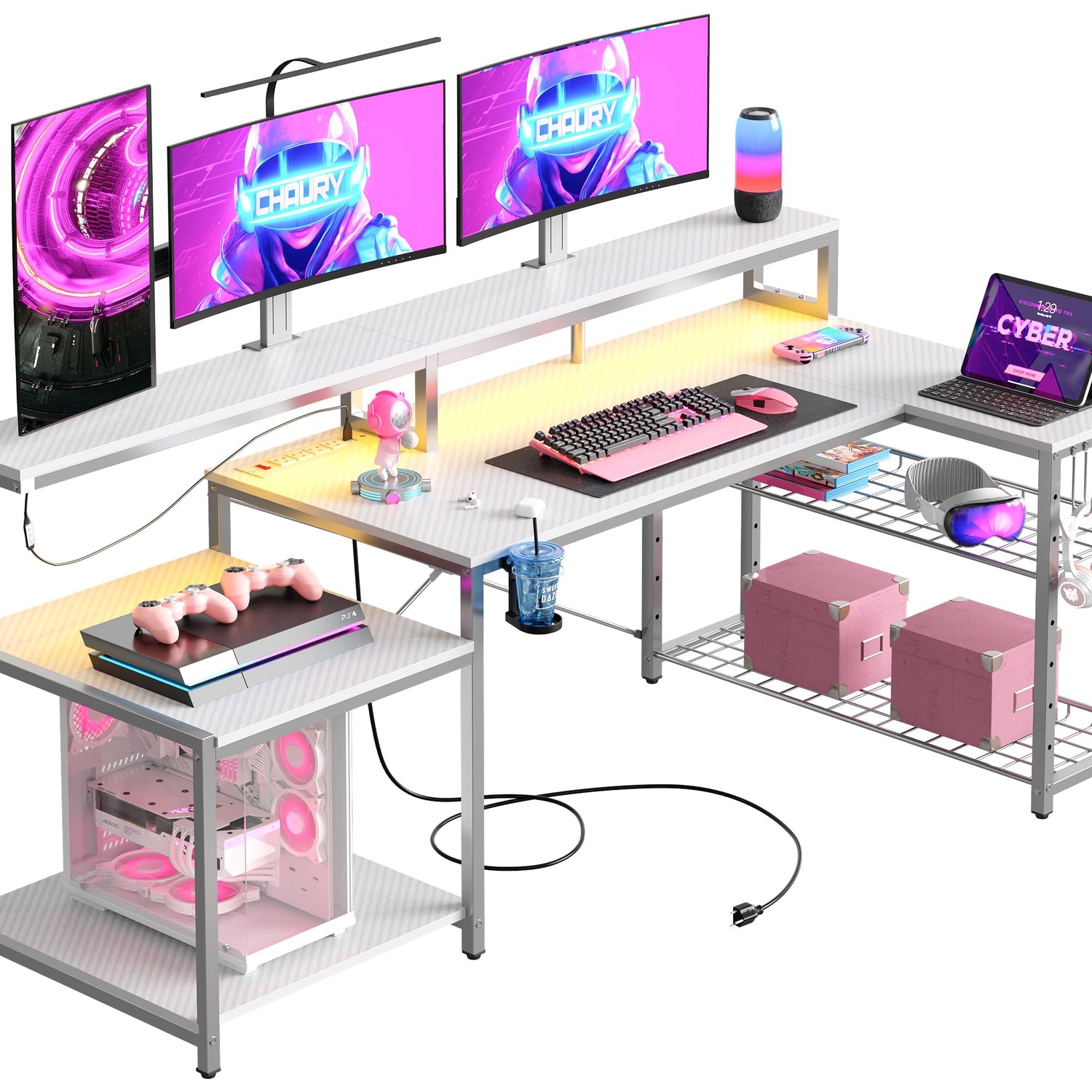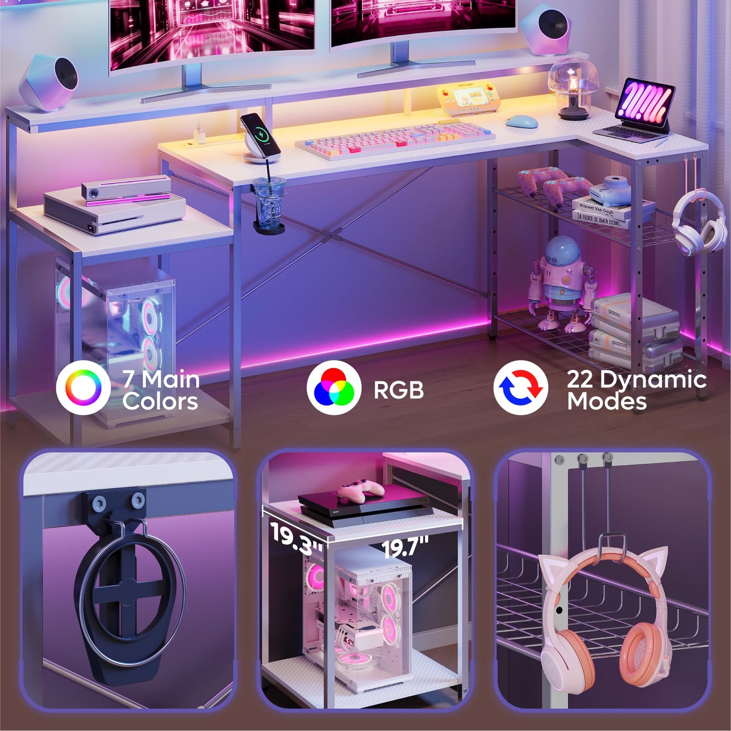 - 【LED Gamer Table】This white gaming desk has an RGB light strip under the monitor stand, with 20 static colors, 22 dynamic modes, and adjustable speed and brightness. You can switch the light color, speed and brightness. Tailor your desk’s illumination to match gaming space and step into a luminous adventure gaming world. This gamer desk is an ideal gift for friends or family.