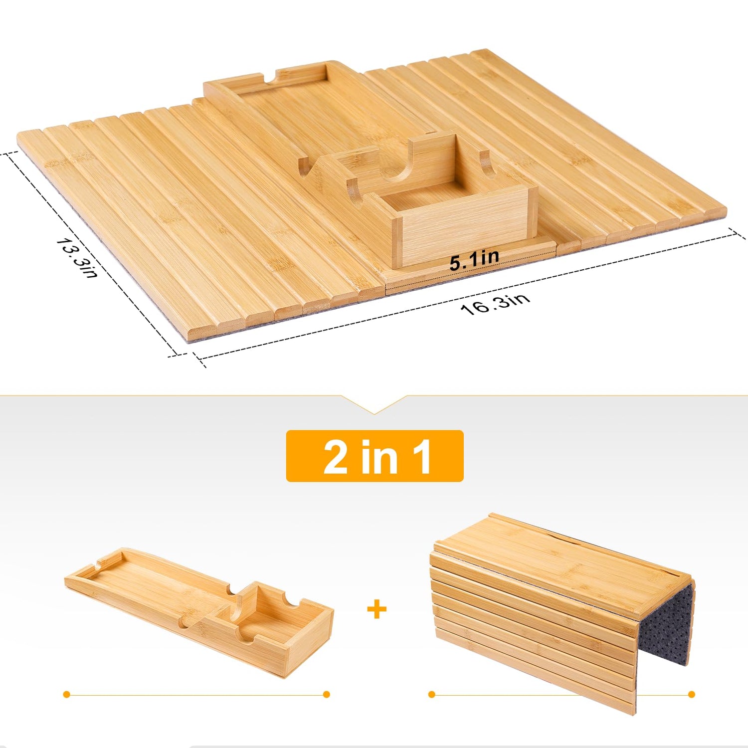Bestjing Bamboo Sofa Armrest Tray - Couch Arm Tray with Detachable Couch Cup Holder Tray - Anti-Slip Foldable Sofa Table Tray - Cup Holder Tray for Drinks Cup Cellphone Remote Snacks