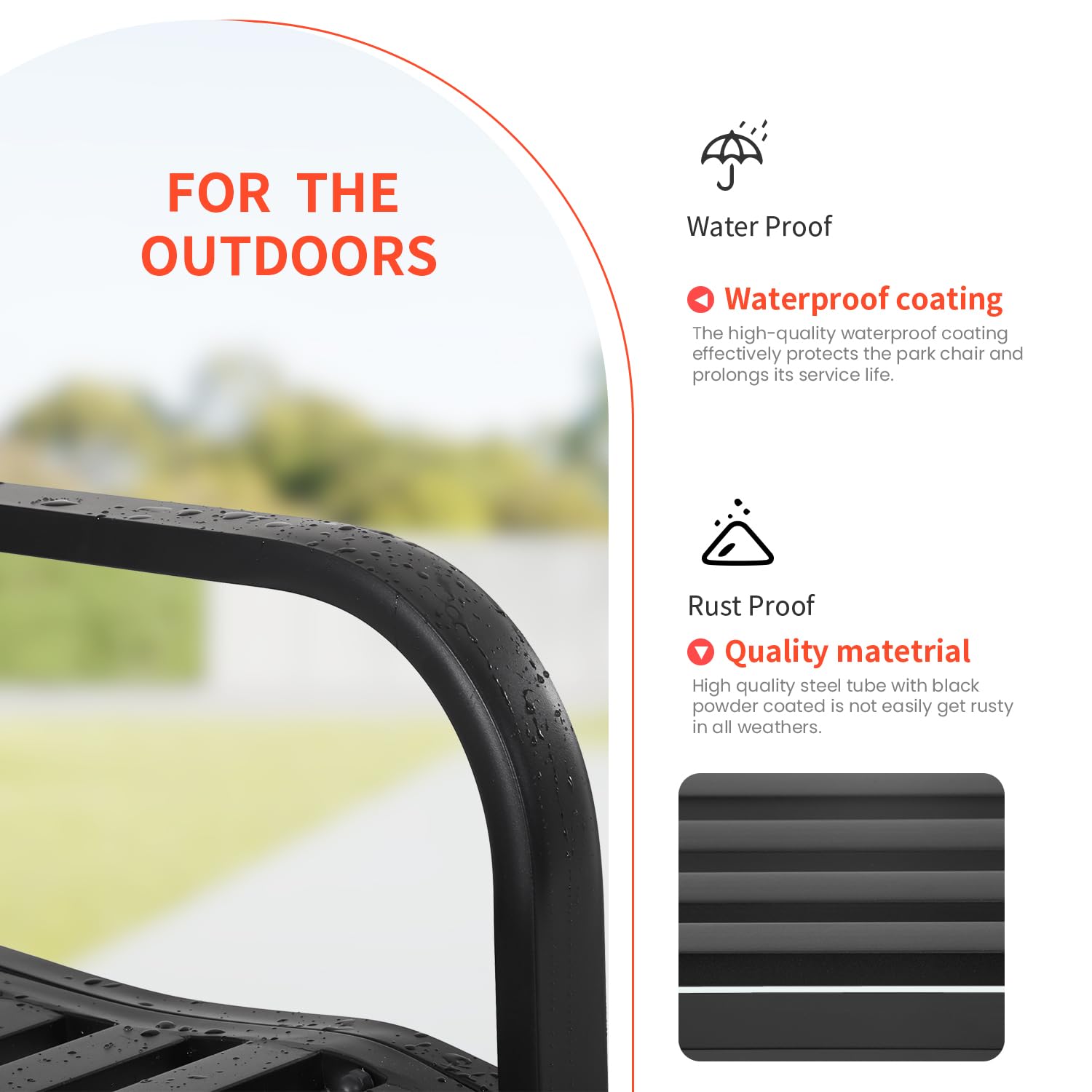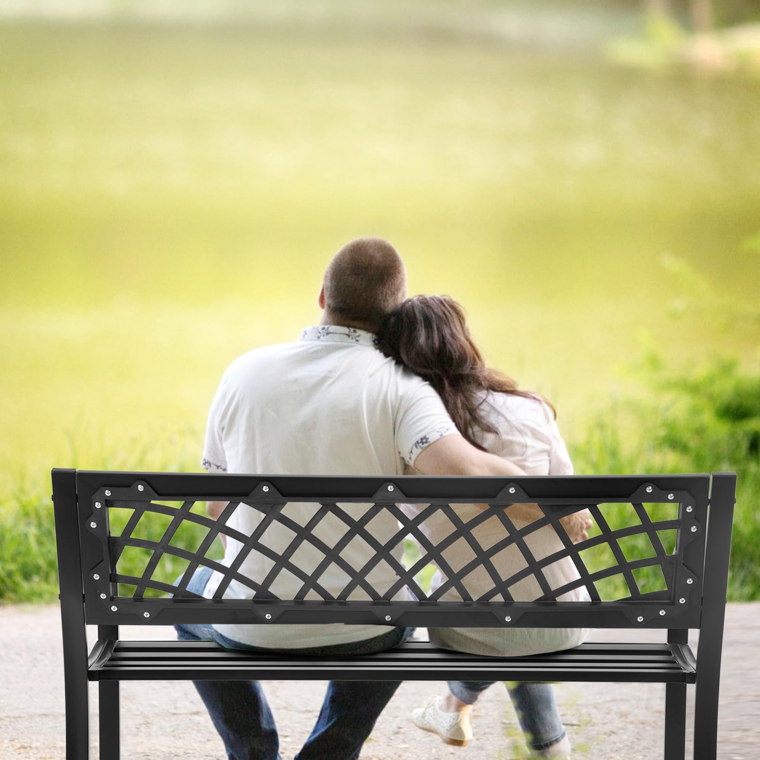 - [Sturdy and Anti-rust] The garden bench is made of powder-coated anti-rust treatment, which is super smooth. The park bench is made of steel bars to ensure strong and stable, durable, and metal benches are suitable for many years of use. The outdoor bench can withstand a weight of 400 pounds.