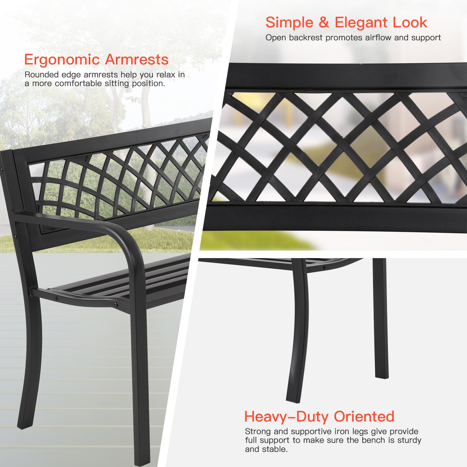 BestMassage Outdoor Garden Bench,Iron Steel Frame Patio Bench with Mesh Pattern and Plastic Backrest Armrests for Porch,Lawn,Garden,Park,Yard,Black