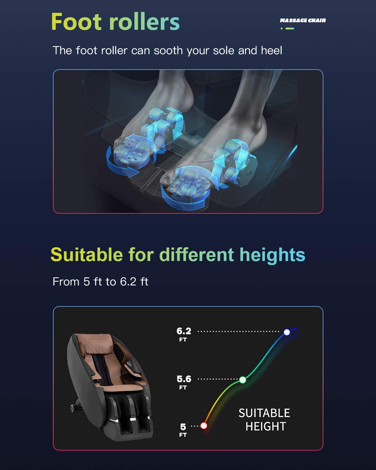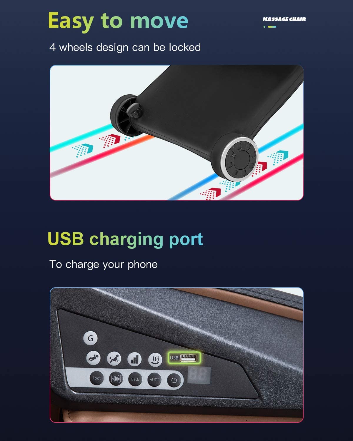 - easy to move- the unique baby compartment shape is matched with the two rollers on the bottom, which makes the massage chair look very special and easy to move. if you need to fix the massage chair, just screw the knob on the right side of the left lower wheel to the right. you can keep the massage chair still.zero gravity massage chair full body massage chair massage chair.