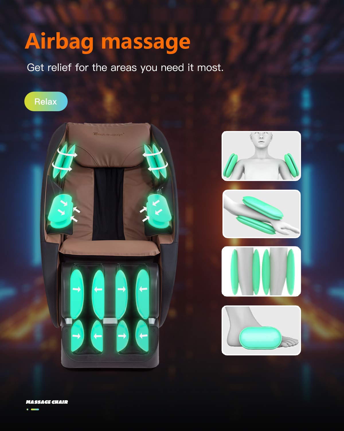 - functional diversity-three power level back massages, controlled heating, adjustable airbag function, eight fixed point module massages, and 3 different automatic massage methods are all designed to give you a more appropriate massage experience.including special stretching programs for full body stretching, dual foot rollers on the feet area are suitable for most,but you can also choose power speed and airbag pressure to control your own massage.shiatsu massage chair full body massage chair m