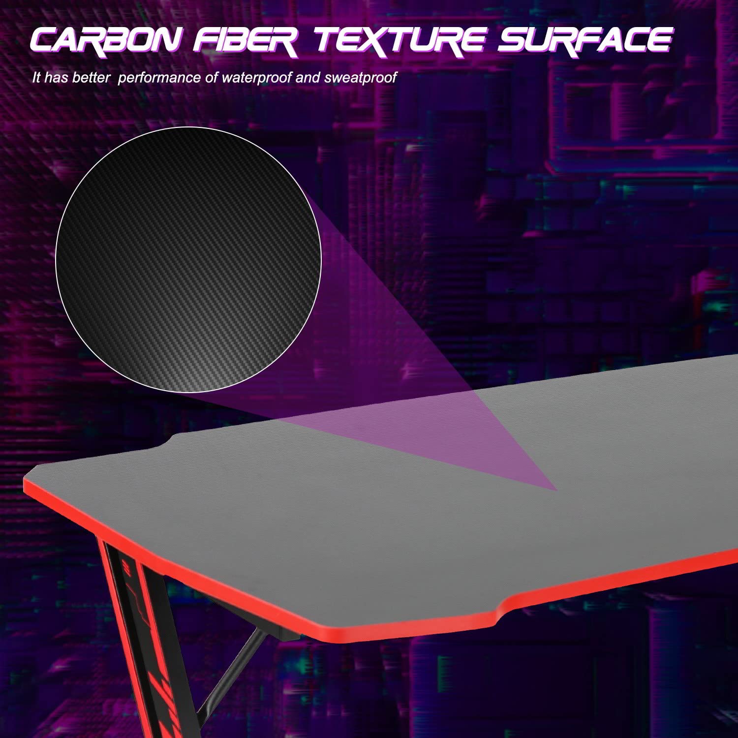 - Large Surface:This gaming desk workstation provides massive space for PC, gaming keyboards, gaming monitors and other gaming gear. Smooth carbon fiber texture surface for a comfortable gaming experience.