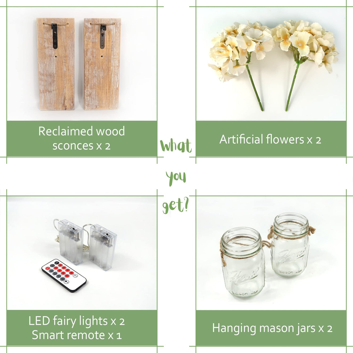 - STUNNING HYDRANGEA PLANTS – Country Decor Besuerte jar wall-hanging sconces also boast realistic-looking yellow hydrangea flowers to give them more natural appeal. They also look amazing highlighted by the soft LED lights floating just below.