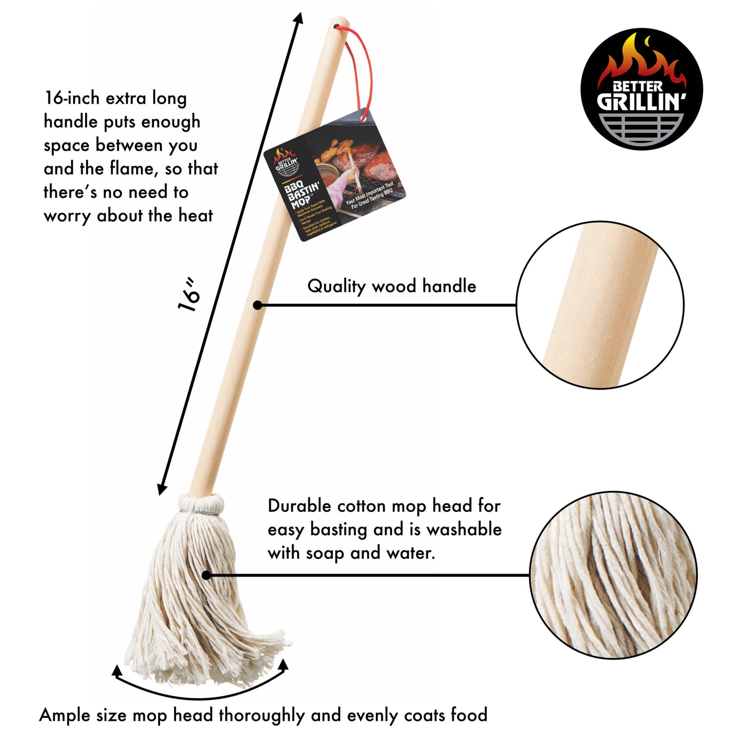 - A great addition to your grilling tools, Better Grillin BBQ Mop -head is made entirely of cotton, washes out easily with soap & water; One of several useful bbq accessories, easy basting mop