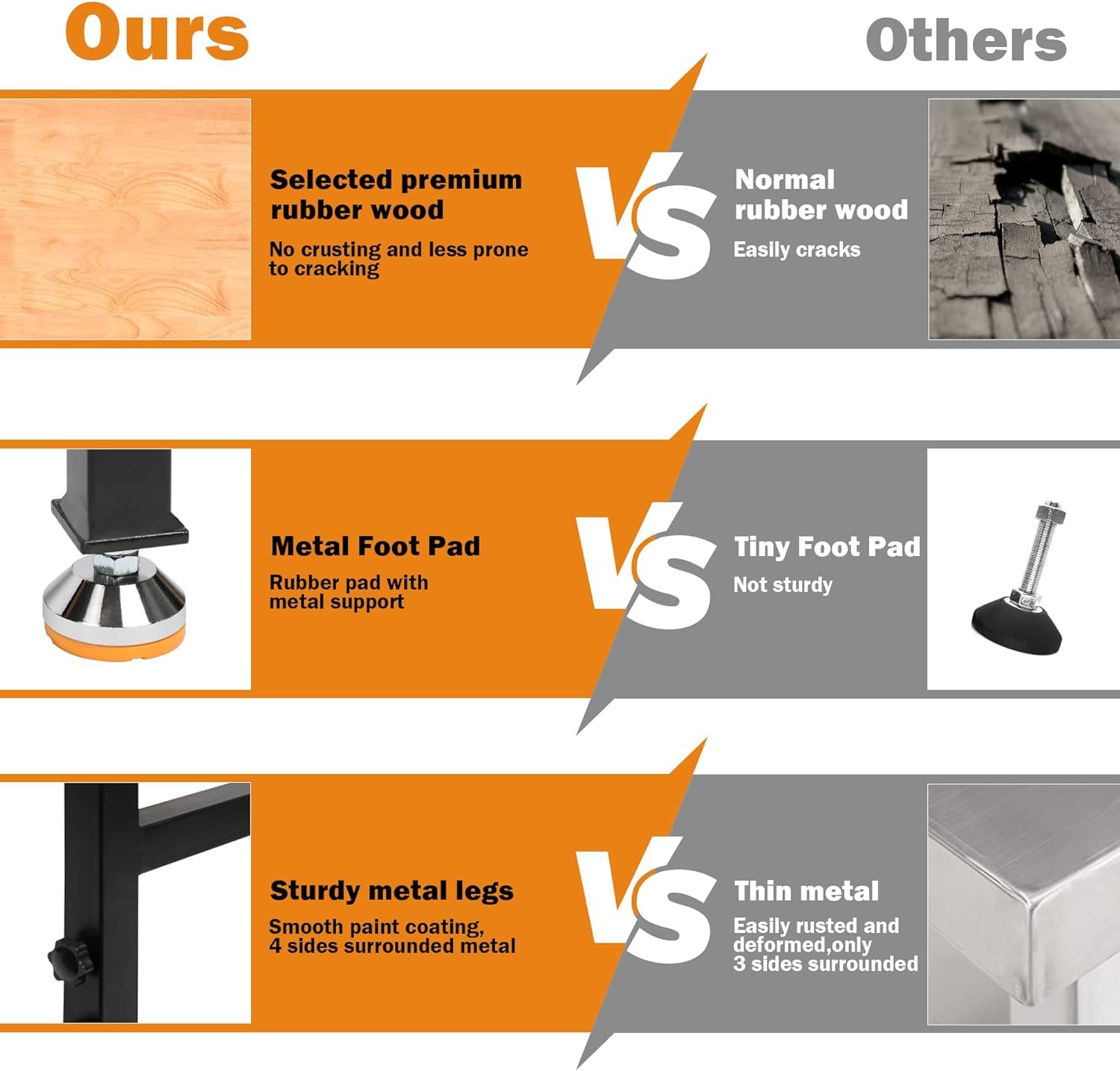 - 【Solid Wood & Reinforcing Rod】 70" x 21" solid rubber wood top with metal frame, the weight load capacity of this heavy duty workbench over 2000 lbs, the extra support rod to make the table more stable horizontally.
