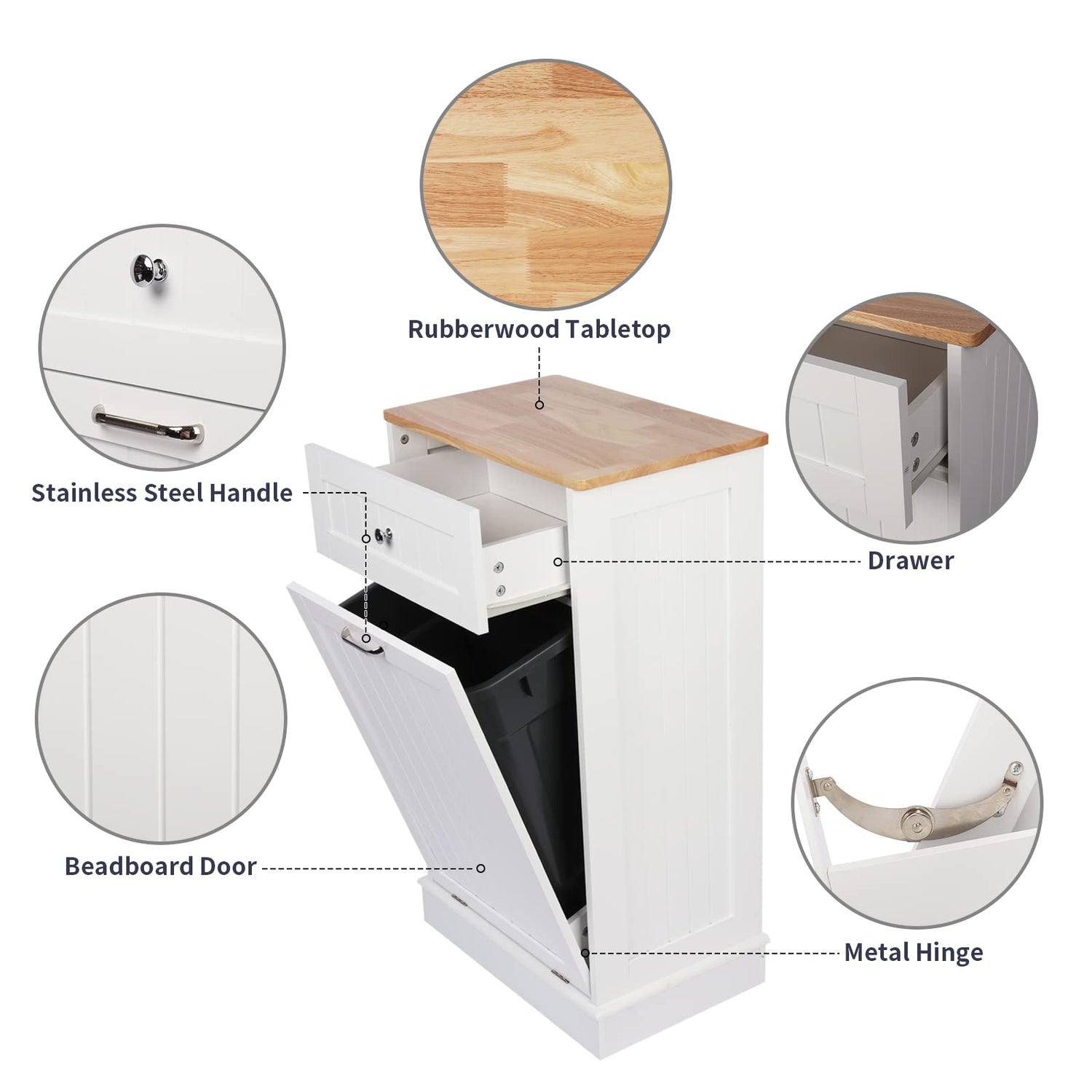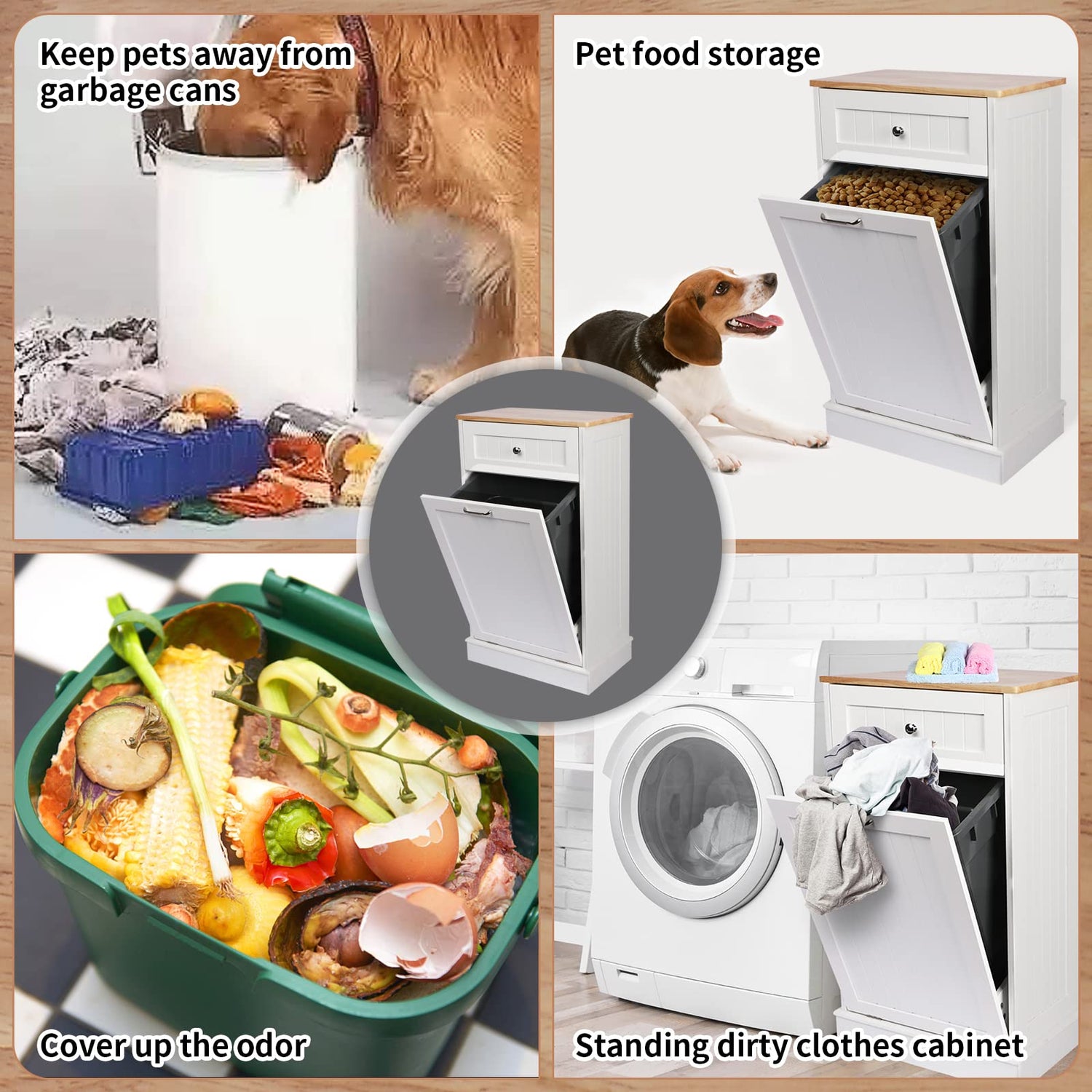 Betterhood Tilt Out Trash Cabinet 10 Gallon Wooden Free Standing Laundry Sorter Cabinet,Recycling Cabinet with Hideaway Drawer,Tilt Out Trash Cabinet Can Bin Kitchen (White)