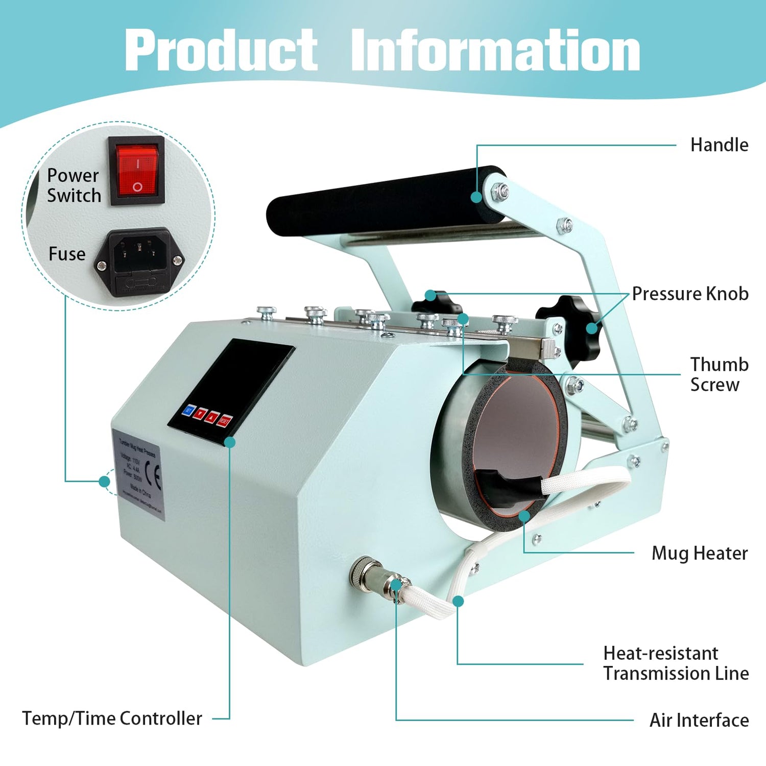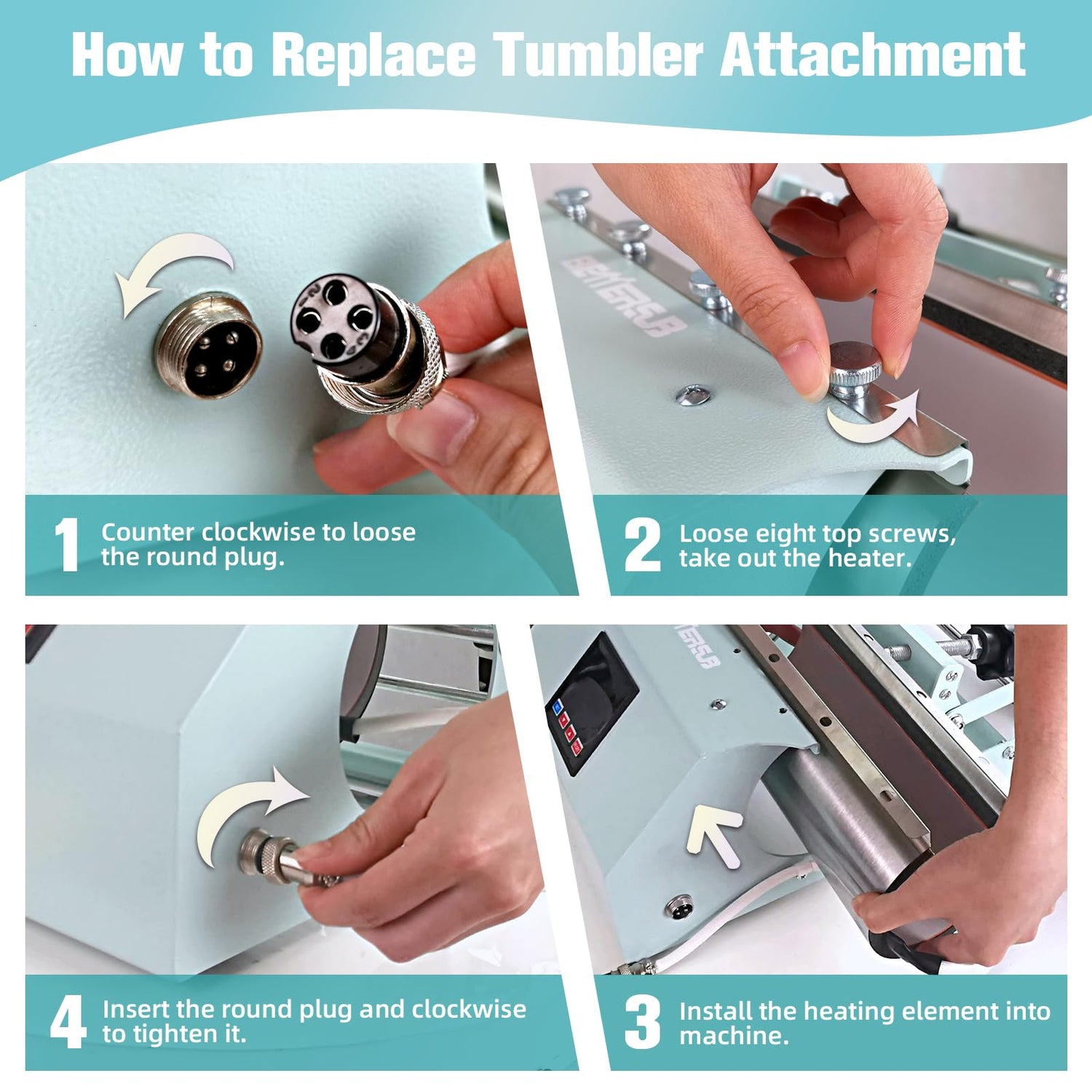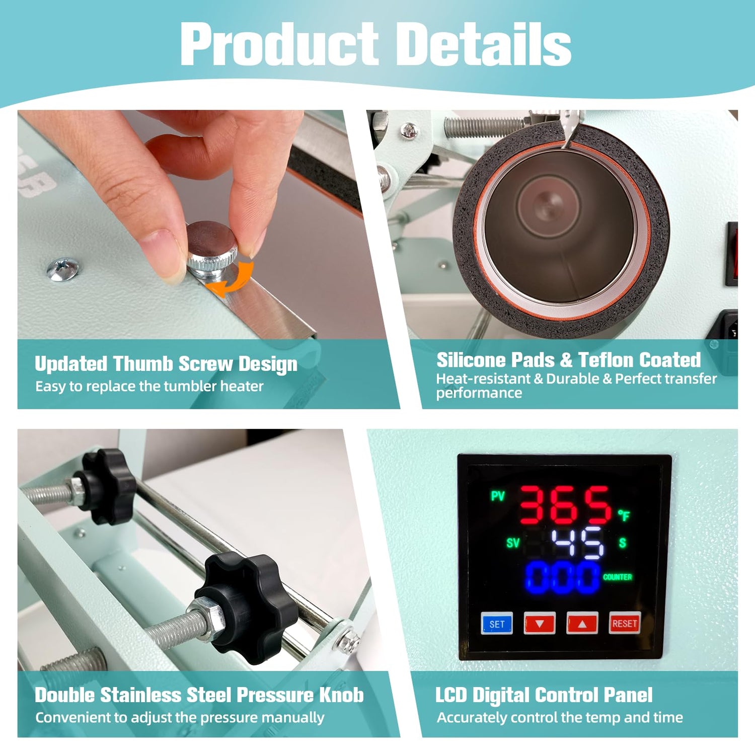- 【Easy To Use 】This tumbler heat press is easy to operate. You can adjust the double pressure knob for more even pressure and replace the heater by twisting the screws manually. It's suitable for DIY, workshop and business.
