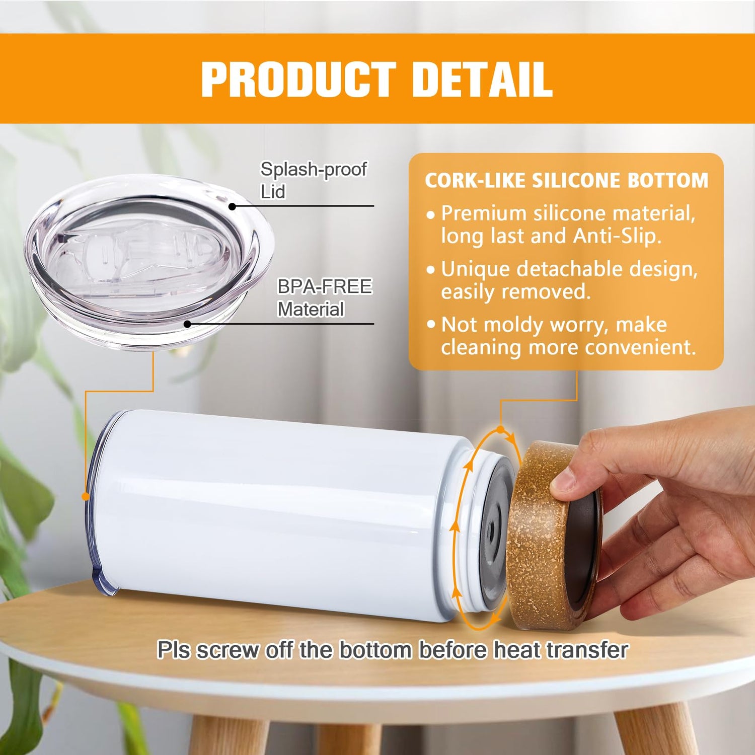 - 【Food Grade Material】Our sublimation cork-like silicone bottom tumbler are made of high quality food-grade 304 stainless steel, which is non-toxic, environmentally friendly and durable. And the BPA-free sliding lid can effectively prevent water leakage.
