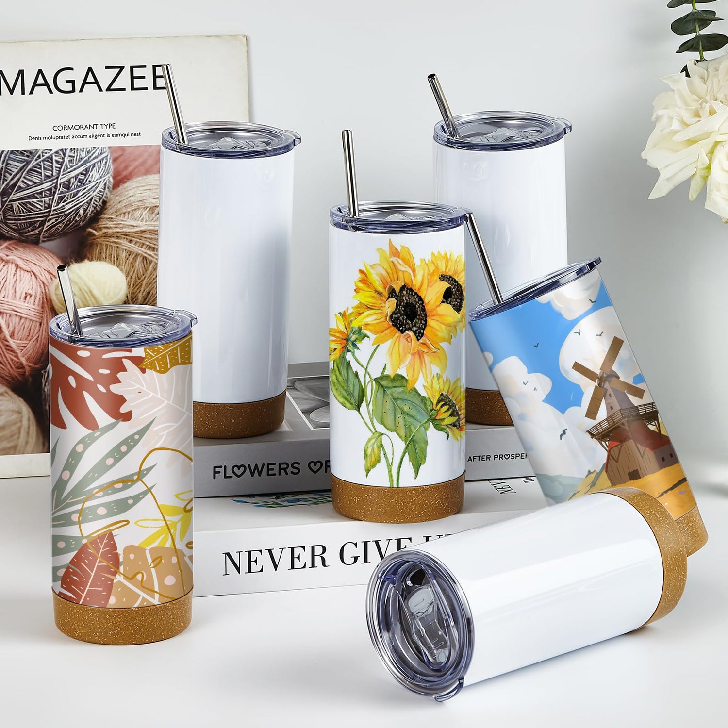 - 【6 Pack Sublimation Cork Bottom Tumbler】The package includes 6 x 17 oz sublimation white tumblers, 6 x individually exquisite gift boxes, 6 x leak-proof lids, 6 x metal straws,6 x straw brushes. A sufficient number of tumblers sets and accessories can satisfy you to make personalized cups for your family, friends, and loved ones.
