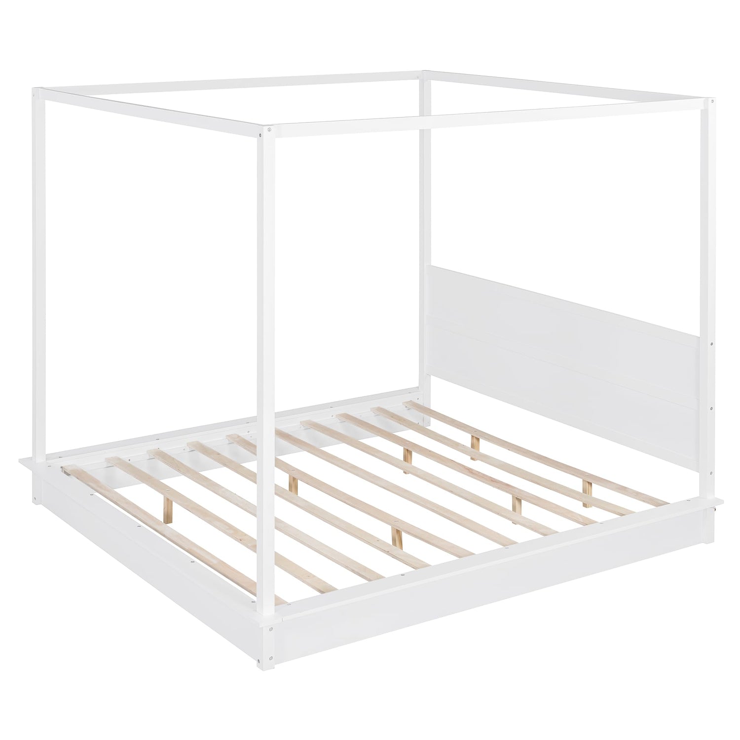 Details: Modern canopy bed frame is the traditional modern look so many people prefer and enjoy. Just the right amount of fancy design to elevate this floor bed frame above those available in stores. It's the quick and easy way to give your bedroom an exciting new look.The top canopy rails allow you to customize the look of this wooden platform bed frame with unlimited options. There are full-length rails on the top of the canopy bed frame, which can be customized with decorative curtains