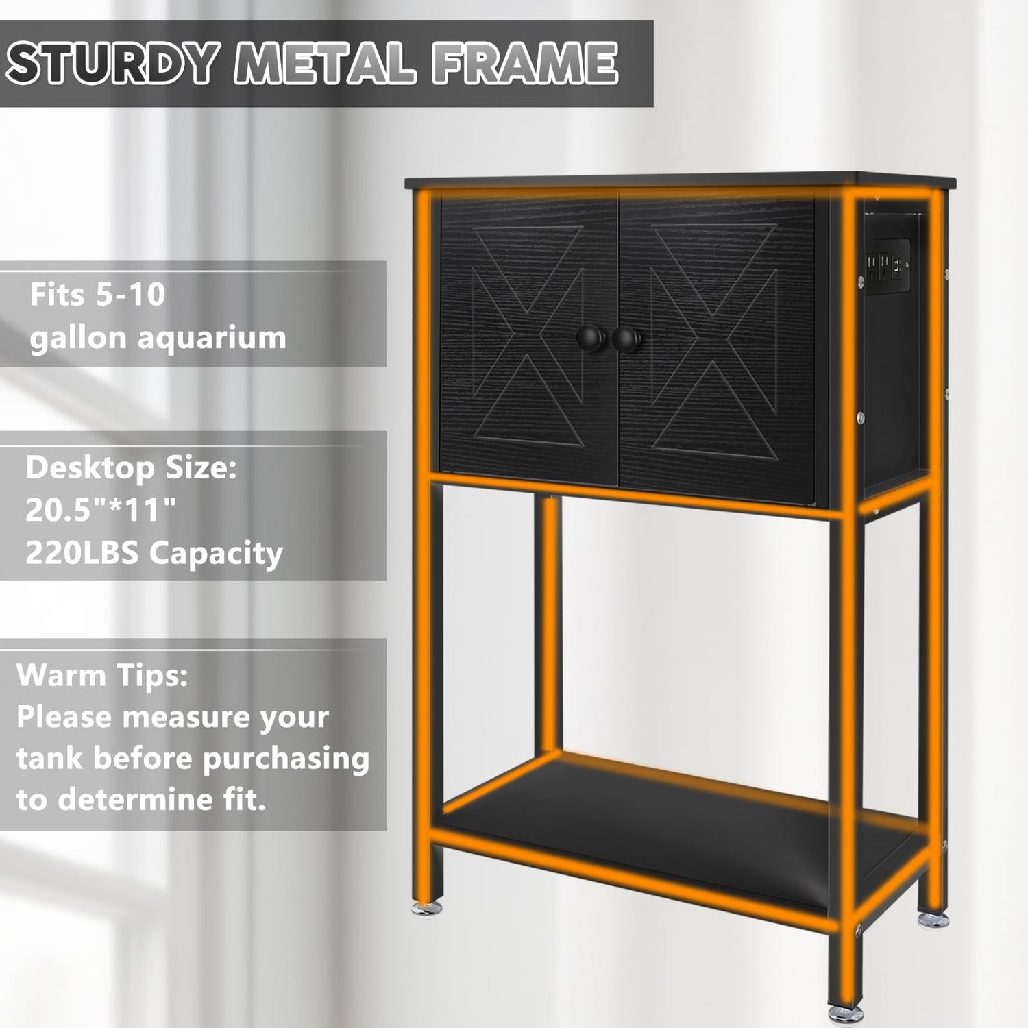 BEURUKU 5-10 Gallon Fish Tank Stand, Heavy Duty Aquarium Stand with Cabinet & Power Outlets for Fish Tank Accessories Storage, Double Tank Stand 20.5" L* 11" W Tabletop, 220LBS Capacity Black