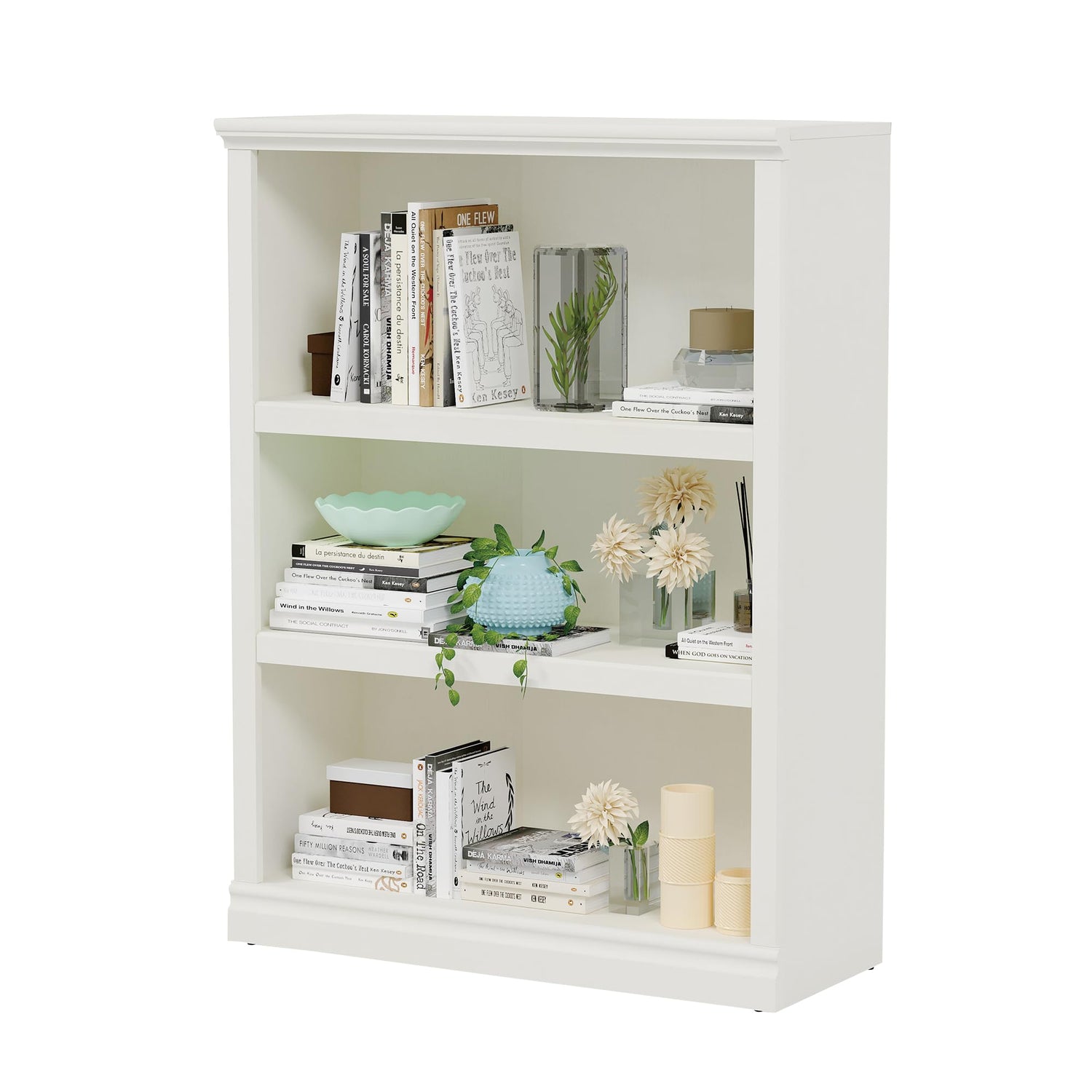 Bevfint Bookcase, Open Storage Book Cases/Shelves, Floor Standing Indoor Furniture 3 Shelf Book case for Farmhouse Library Office Bedroom Kids, White - 3 Tier
