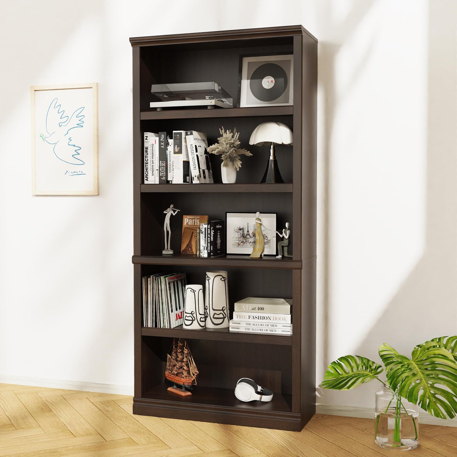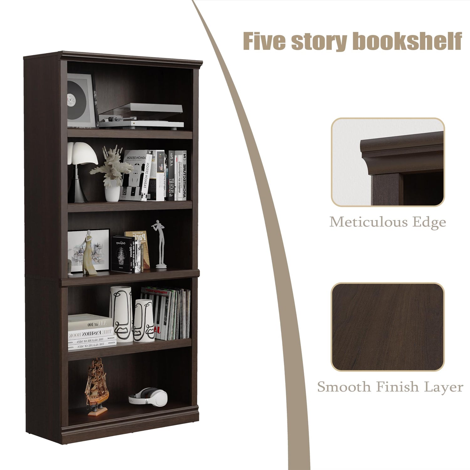 Bevfint Bookshelf, Open Storage 70 Inch Tall 5 Shelf Bookcase, Floor Standing Bookshelves and Bookcases, Book case for Farmhouse Library Office Bedroom Kids, Dark Cherry - 5 Tier