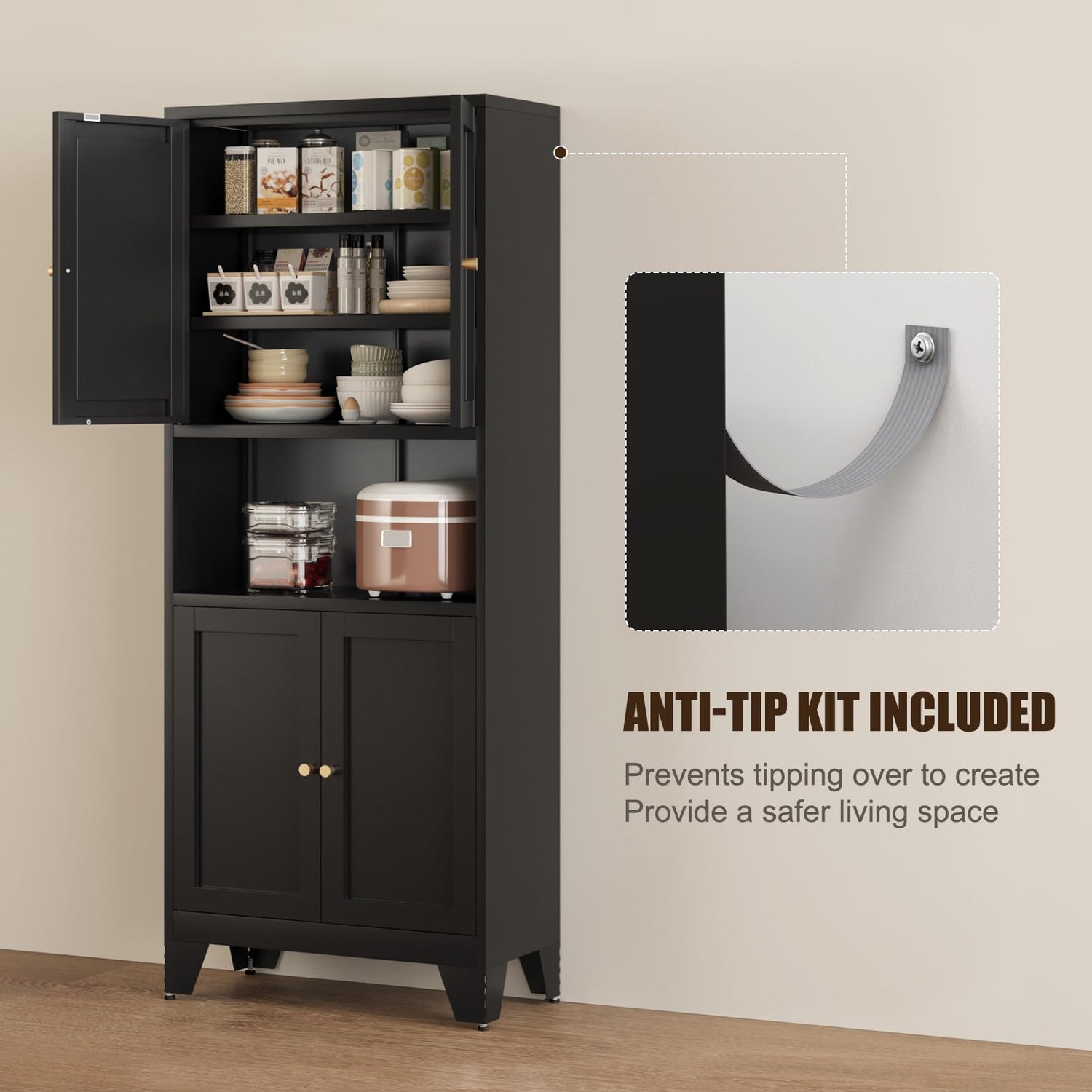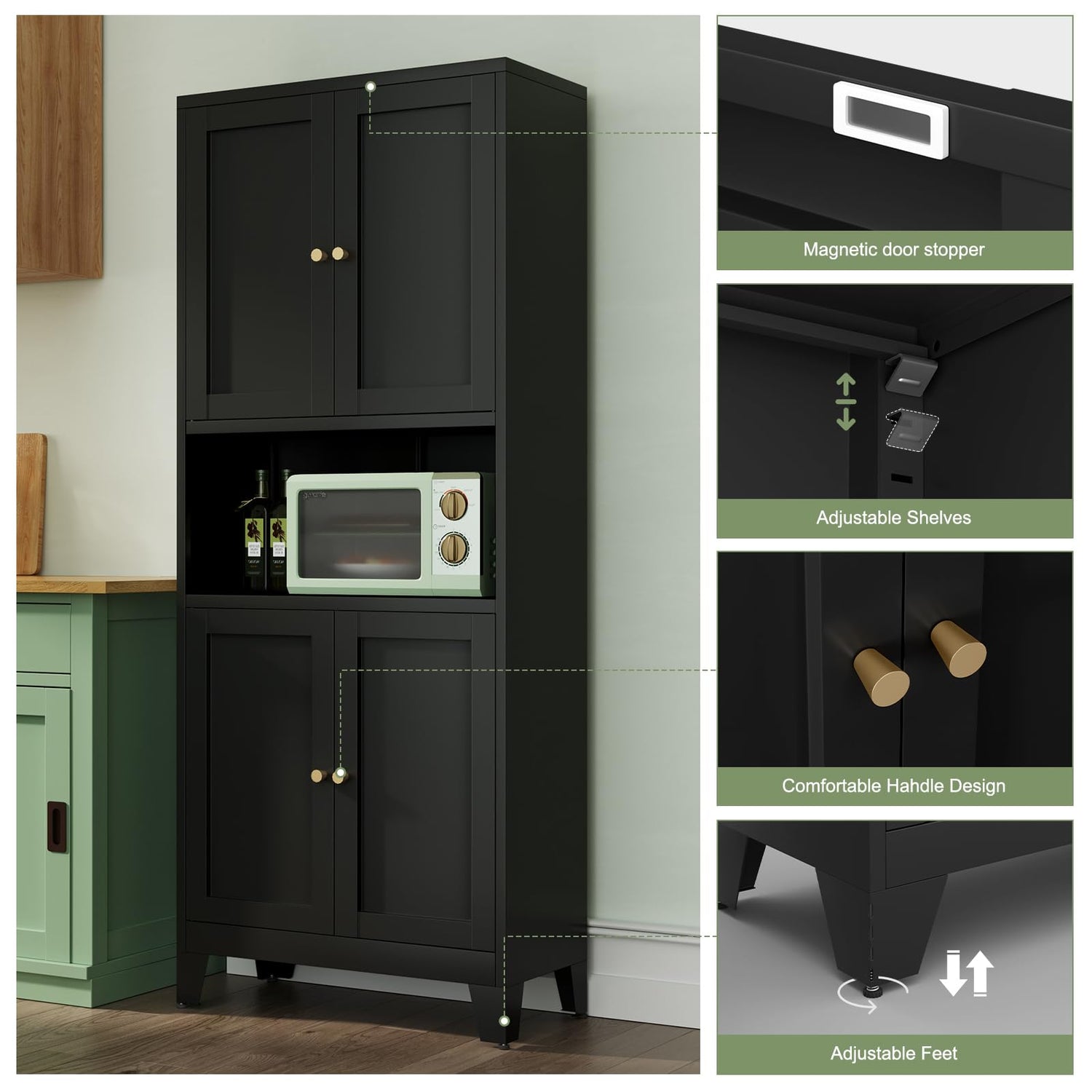 Bevivog 69" Pantry Cabinet,Tall Metal Storage Cabinet with Doors and Adjustable Shelves,High Freestanding Cupboard Locker for Kitchen,Dining Room,Living Room,Office,Black