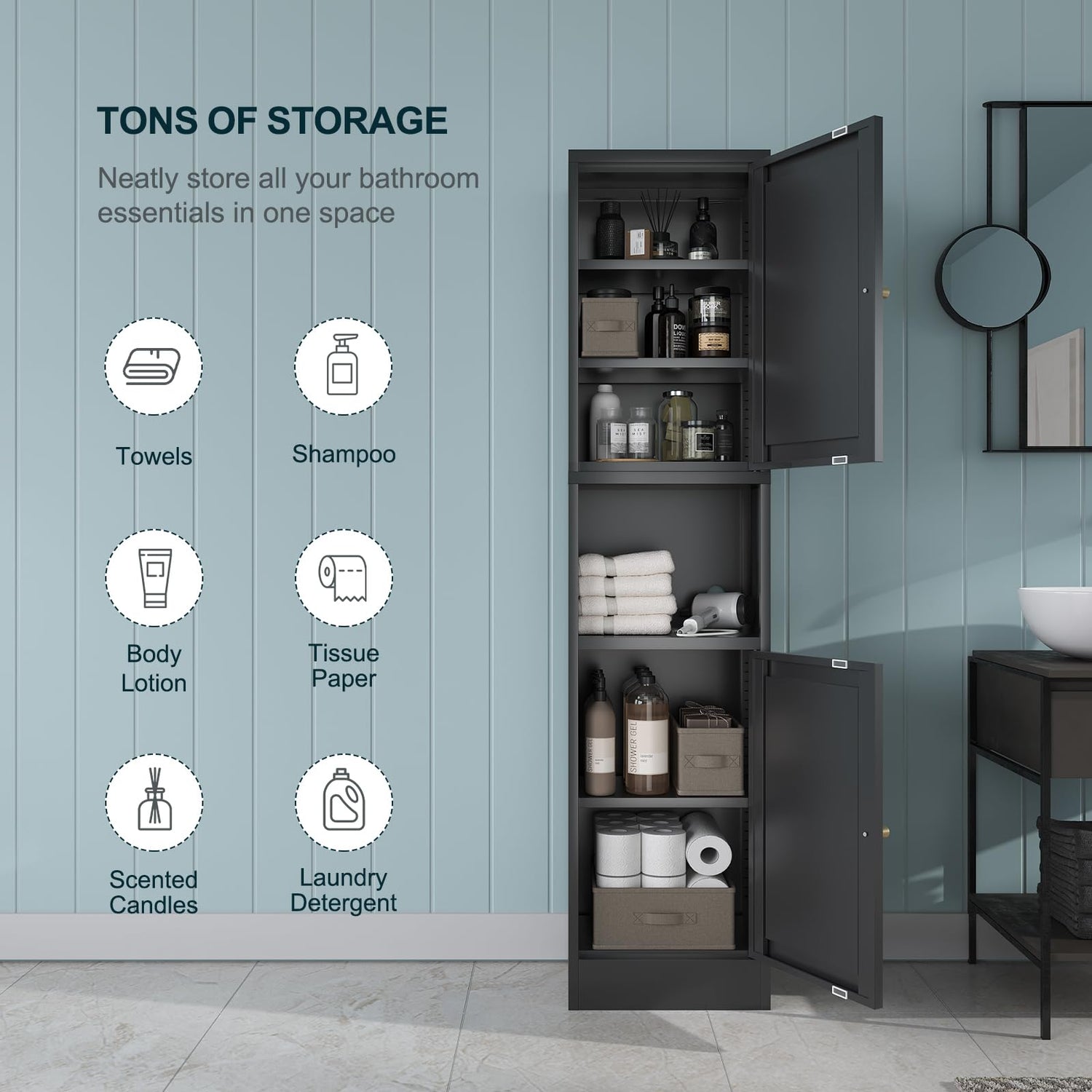 - [Spacious and Space-saving]Measuring 11.81"D*15.75"W*66.93"H, this bathroom storage cabinet occupies a small footprint while meet various storage needs;With this unit, you can utilize your bathroom space to the max,storing a total weight of about 300 lbs