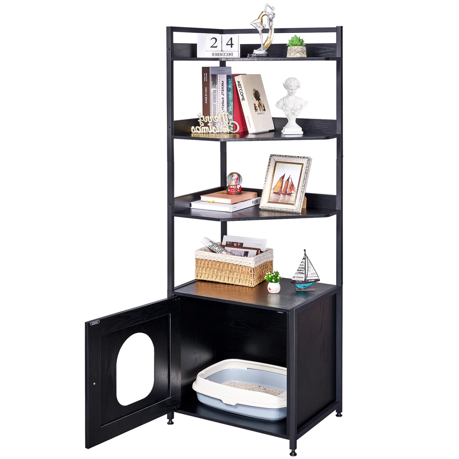 - Multi Functional Design: This litter box enclosure with shelves features 4-tier storage, ideal for displaying photos, plants, or storing cat essentials discreetly. The lower compartment serves as a hidden cat litter box cabinet, which can be used to store cat litter boxes or litter boxes to maintain cleanliness or as a resting space for cats