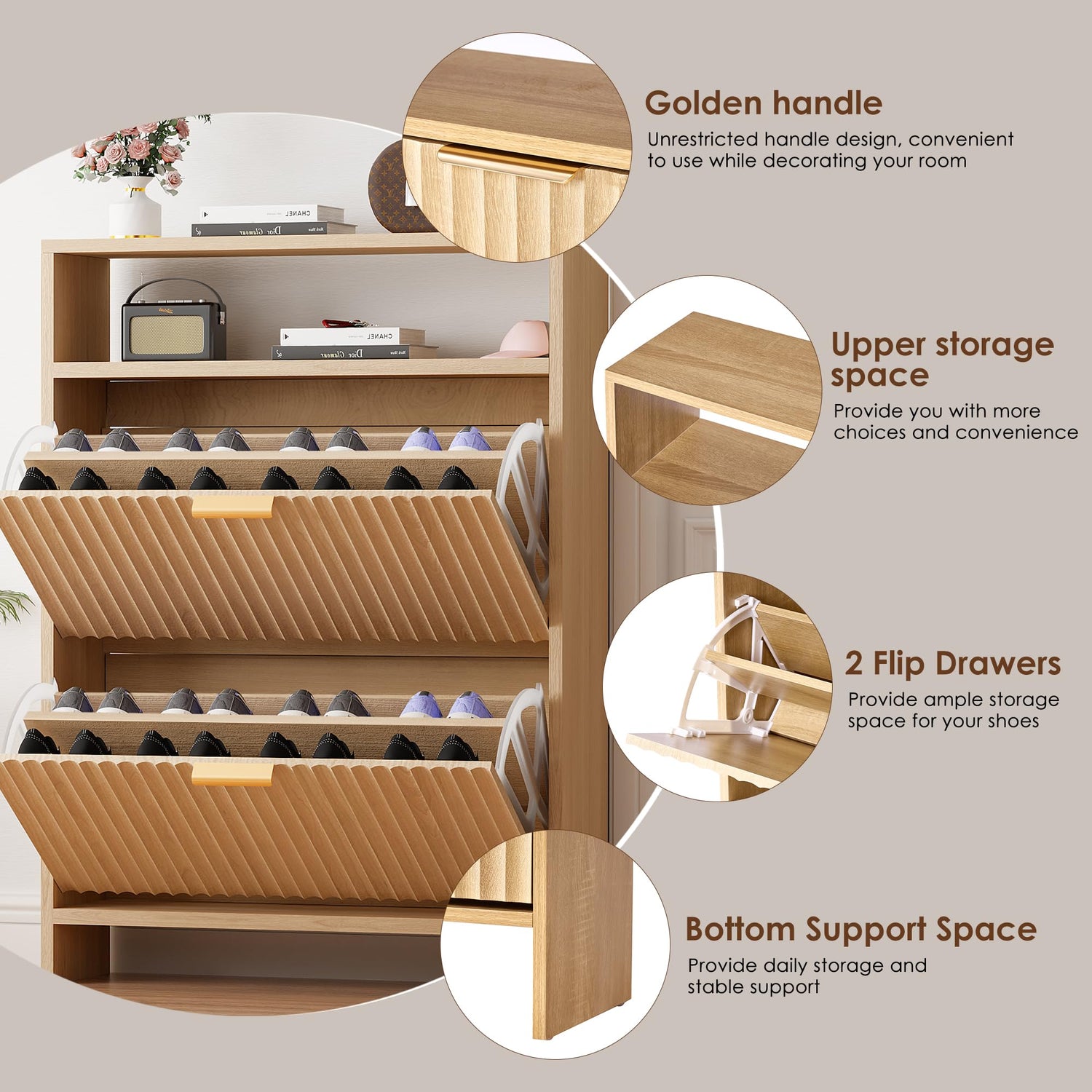 BEWISHOME Shoe Storage Cabinet for Entryway,Narrow Modern Shoe Organizer Cabinet with 2 Flip Drawers,Freestanding Fluted Shoe Organizer for Hallway,Wood,KXG04Y