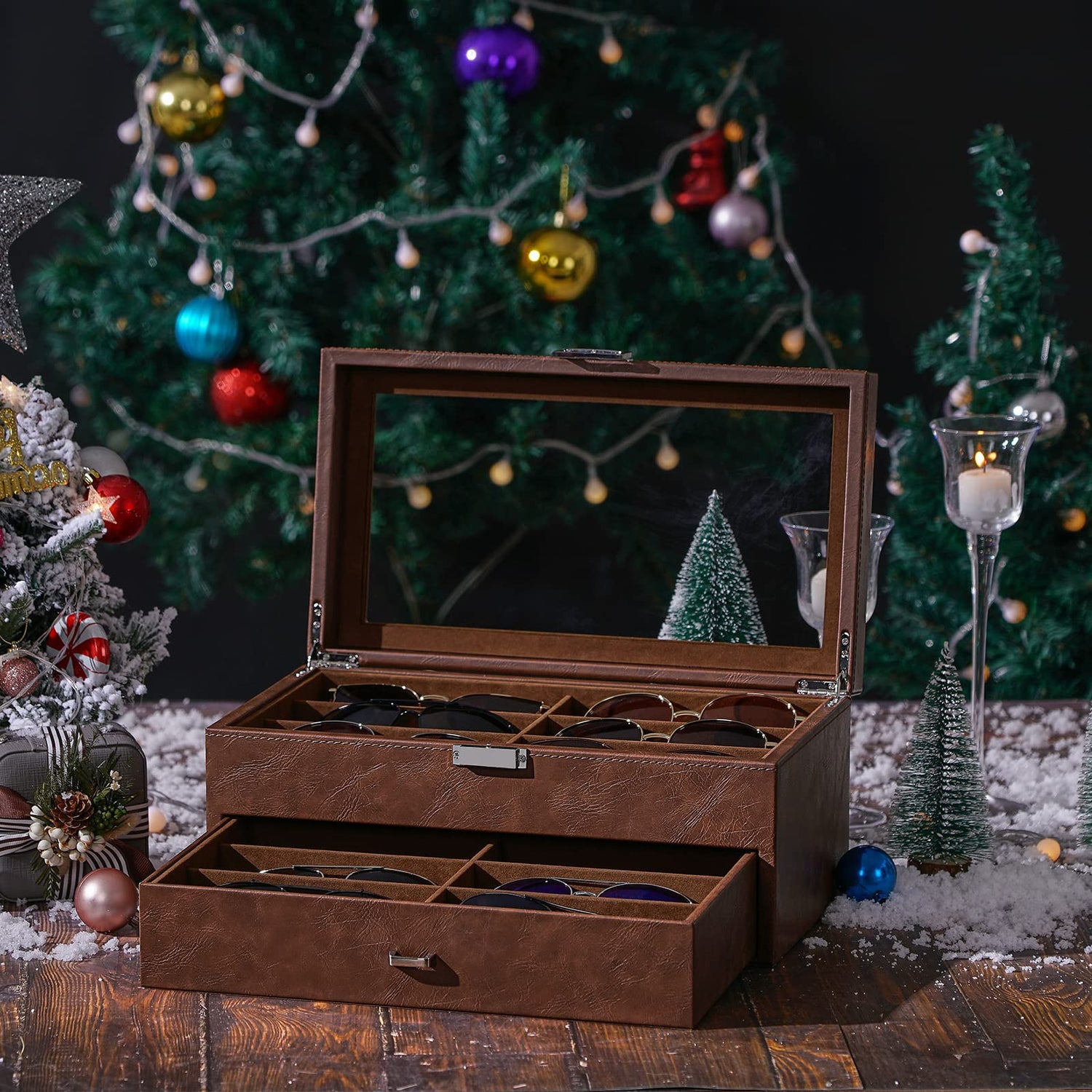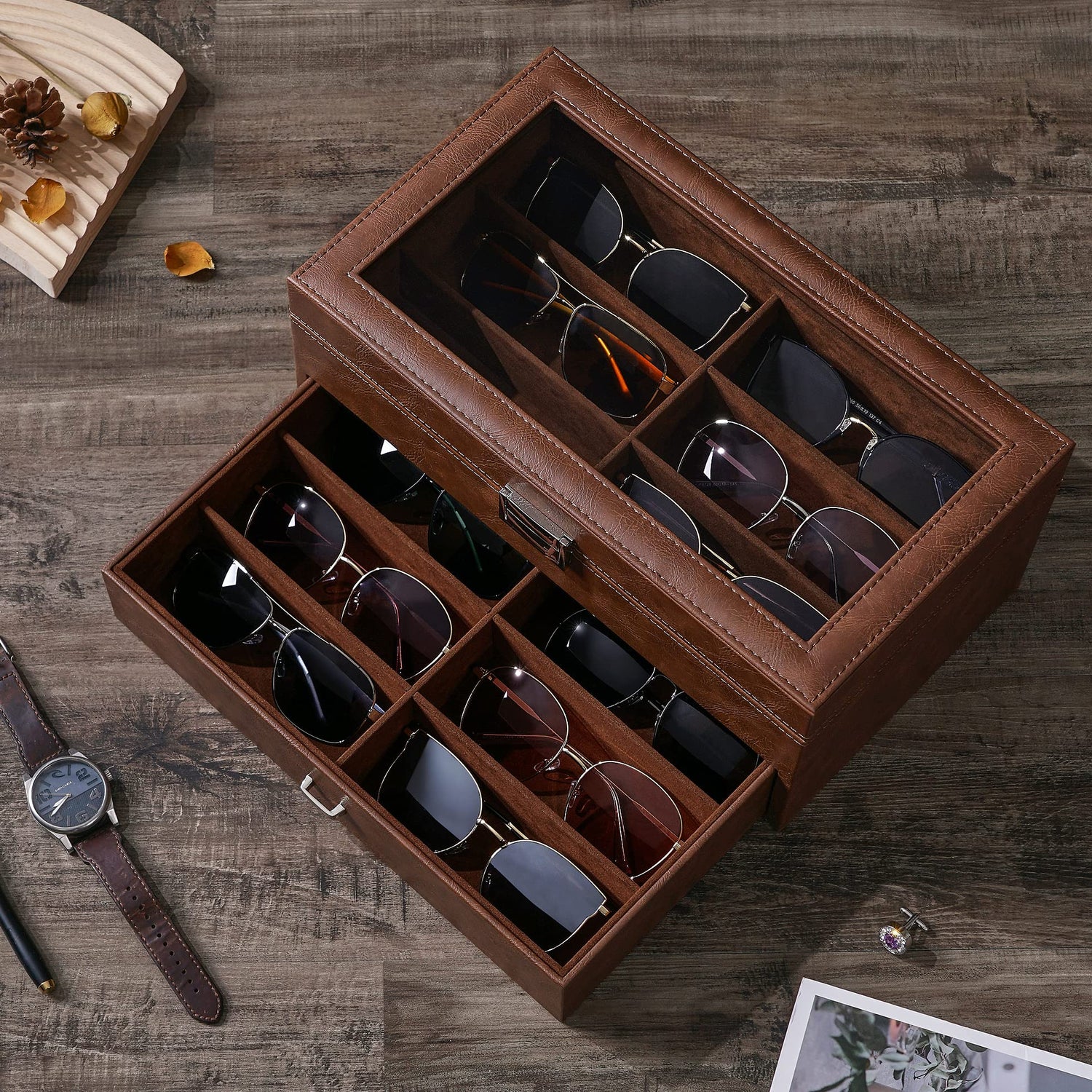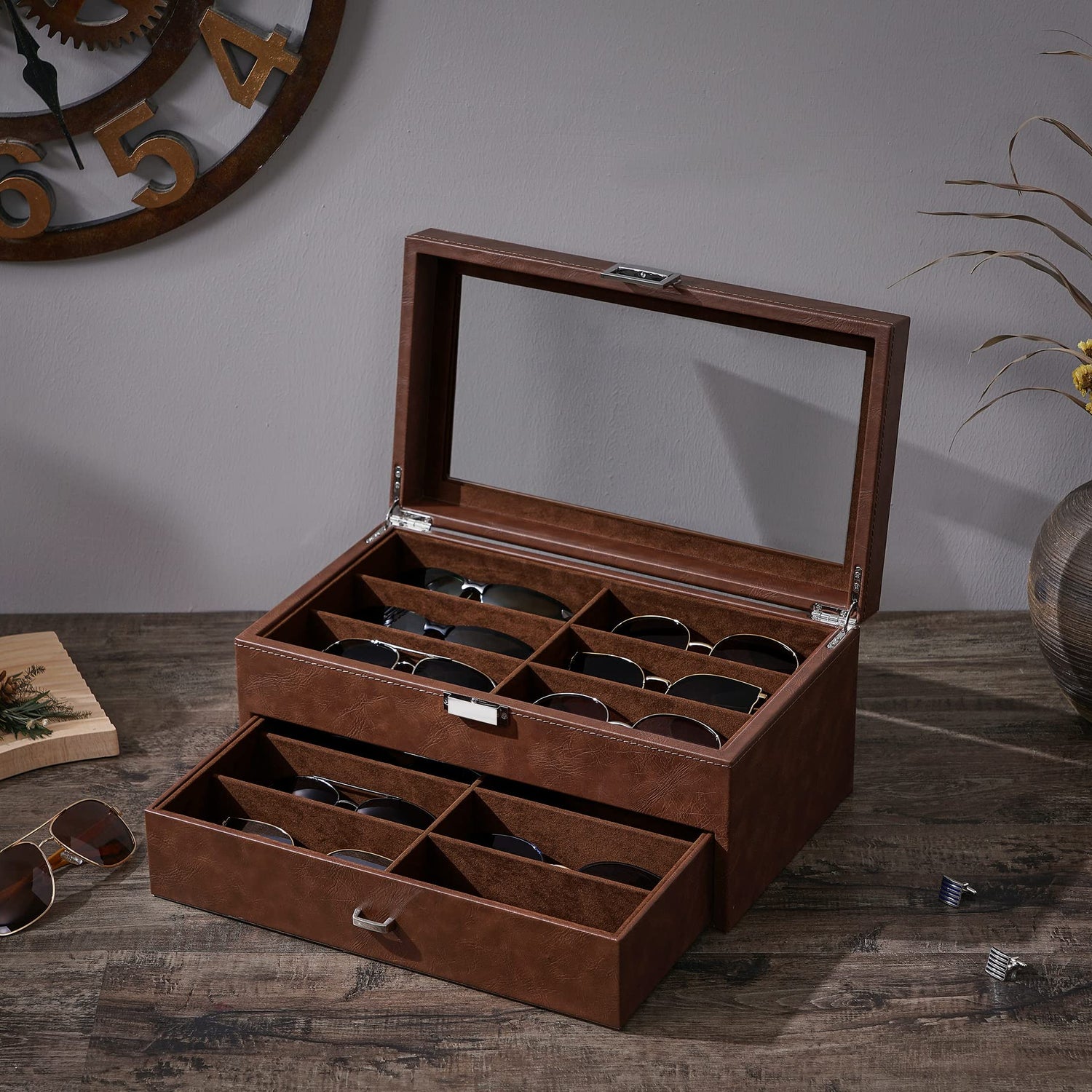 - LARGE REAL GLASS LID: Why not showing your sunglasses to your family and friends? This sunglasses box allows you effortlessly to see through the box which helps to beautifully display your collections and you can easily pick your favorite pair of glasses for any occasion