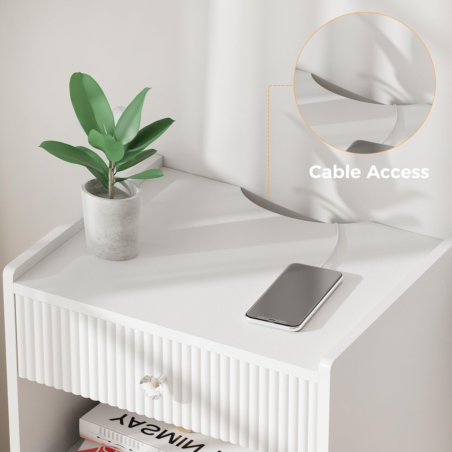 - SLEEK MODERN DESIGN: This floating bedside table, showcasing elegant fluted details and a crisp white finish, seamlessly complements your existing furniture with its simple yet stylish aesthetic. The compact design includes edge protection to prevent items from falling, while a convenient cord hole allows you to discreetly manage cables for a tidier workspace. Combining functionality with decorative appeal, our nightstands are the perfect addition to enhance any room in your home