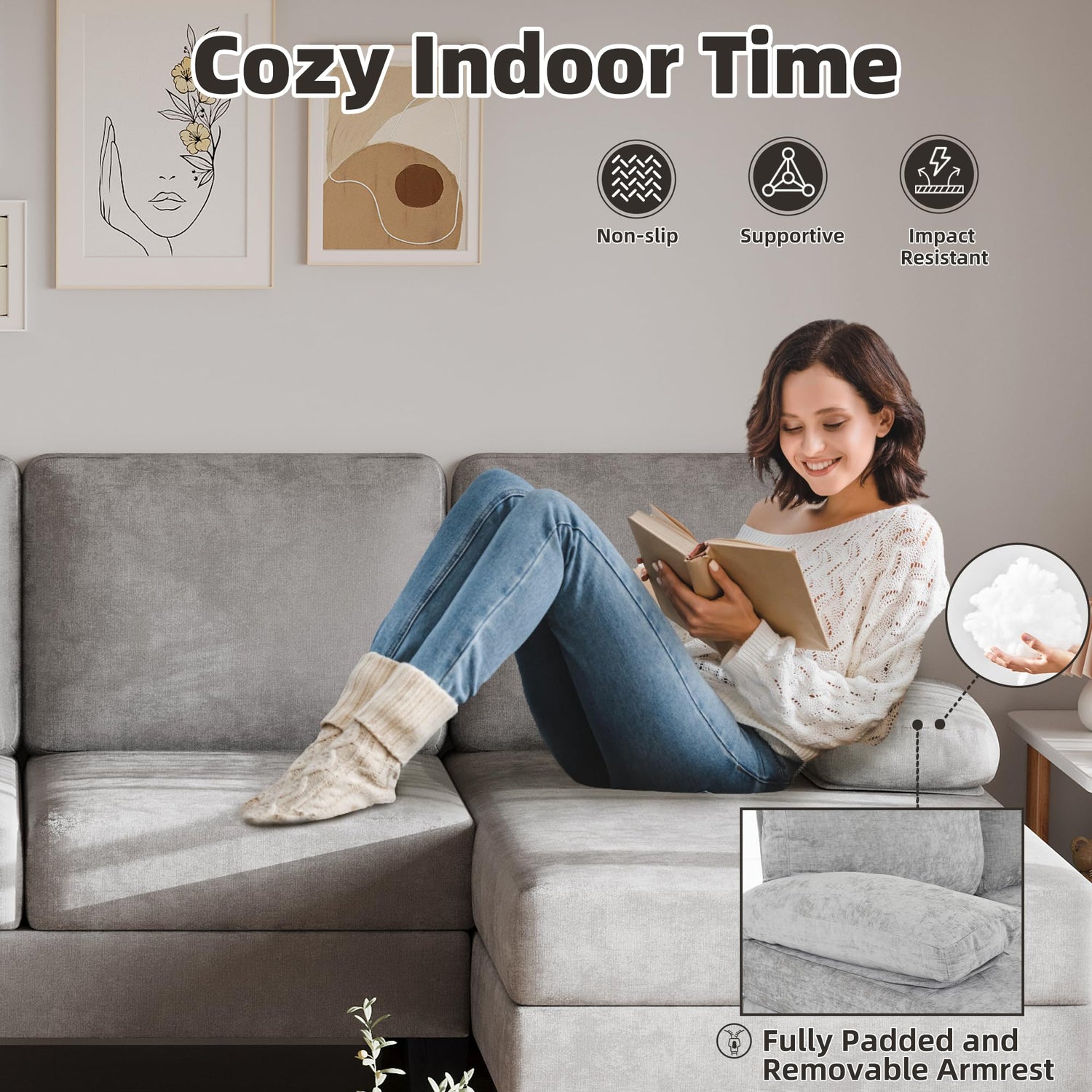 - 【EASY TO ASSEMBLE】This sectional sofa for living room is designed for easy assembly, with clear instructions included. The vacuum-packed cushions can be fluffed simply by unzipping the cover and allowing them to expand naturally over 48 hours, ensuring they regain their original shape and plushness.