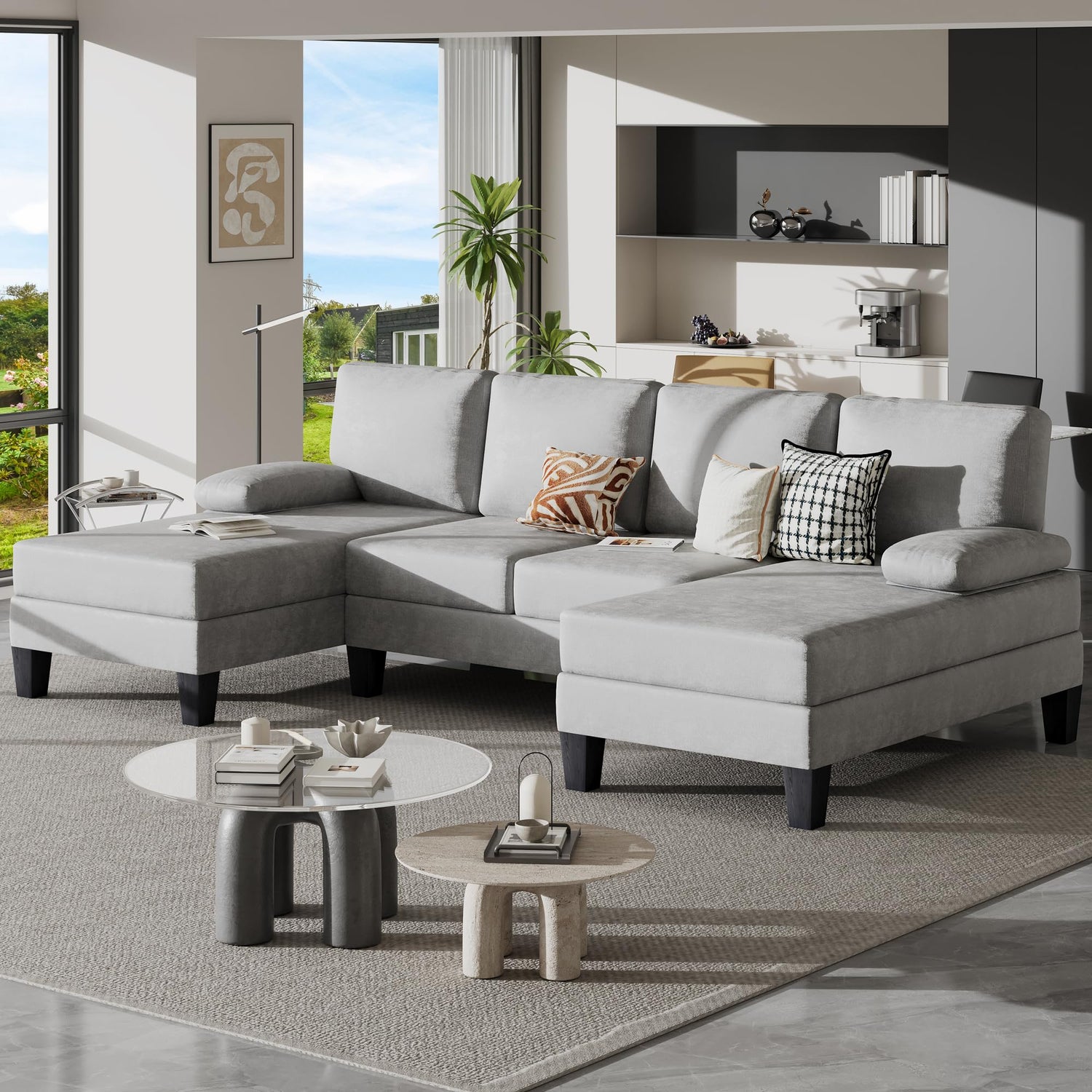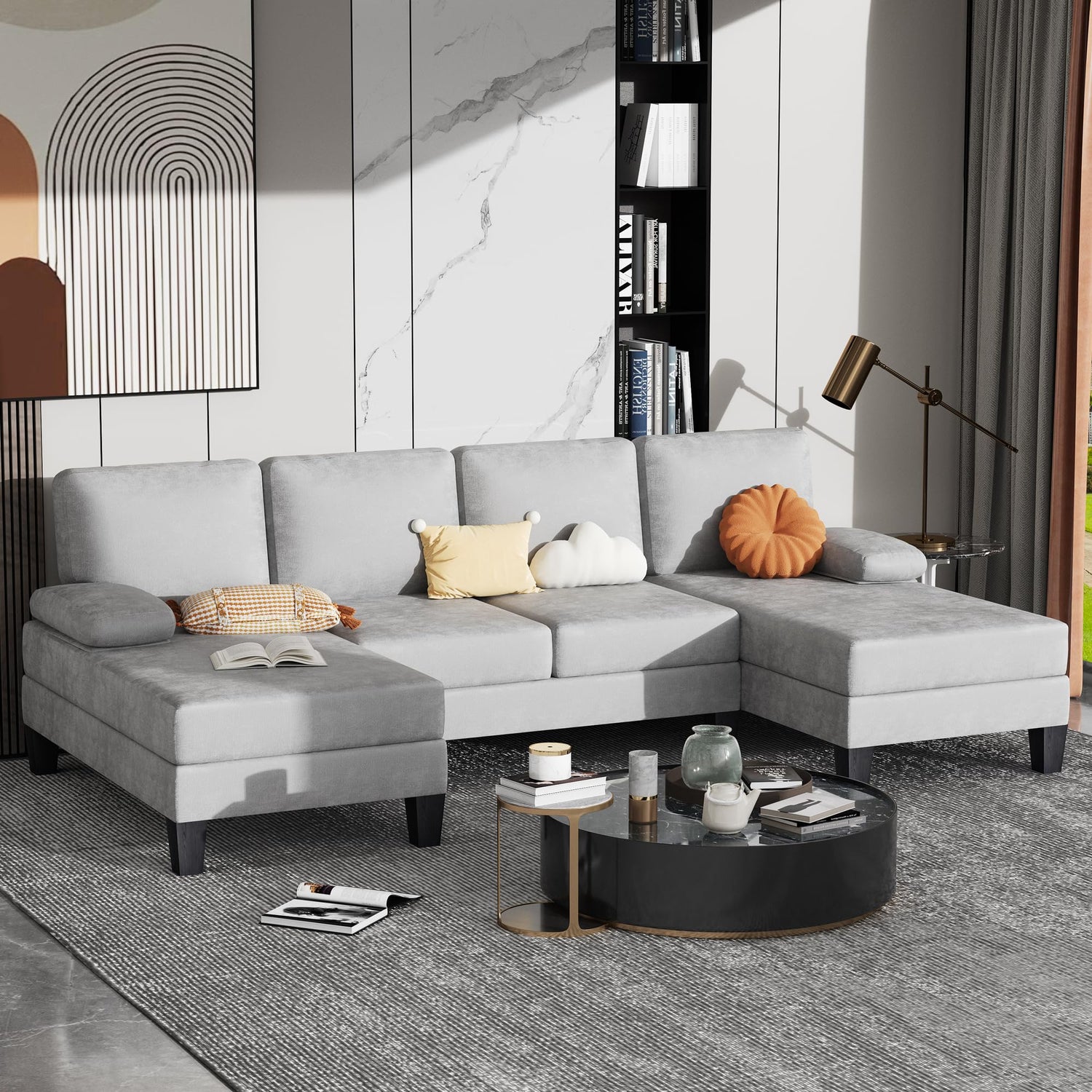 Bezseller 107.3" Sectional Couches for Living Room, U Shaped Modular Sofa Couch with Cushion & Chenille Fabric, 4-Seat Comfy Furniture Sets with Double Chaise for Apartment, Reception Room, Grey