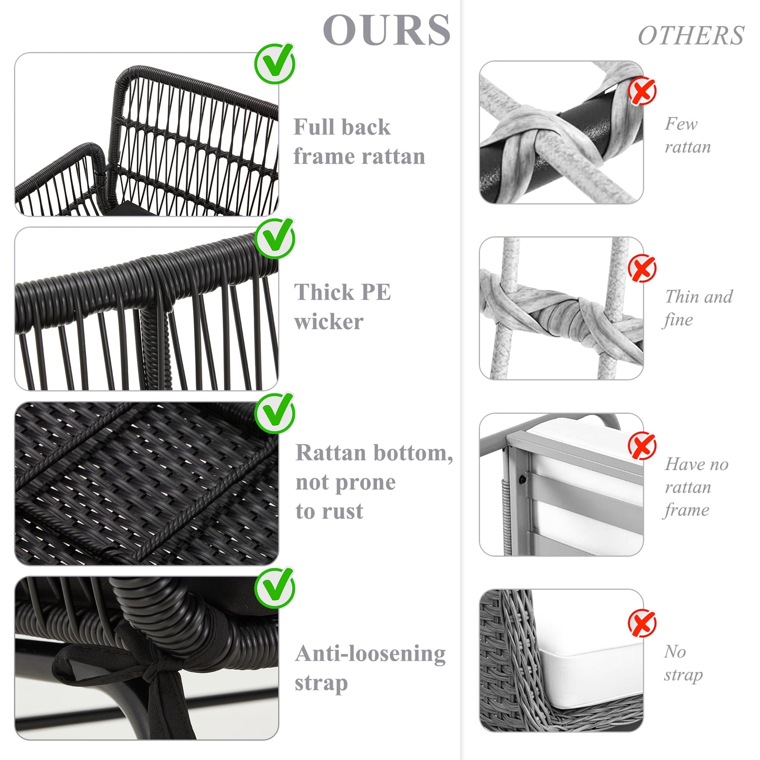 - STURDY FRAME & YEAR-ROUND USE - Built with a heavy-duty, powder-coated steel frame that holds up to 485 lbs. Wrapped in fade-resistant, all-weather PE wicker—designed to handle sun, rain, and snow.