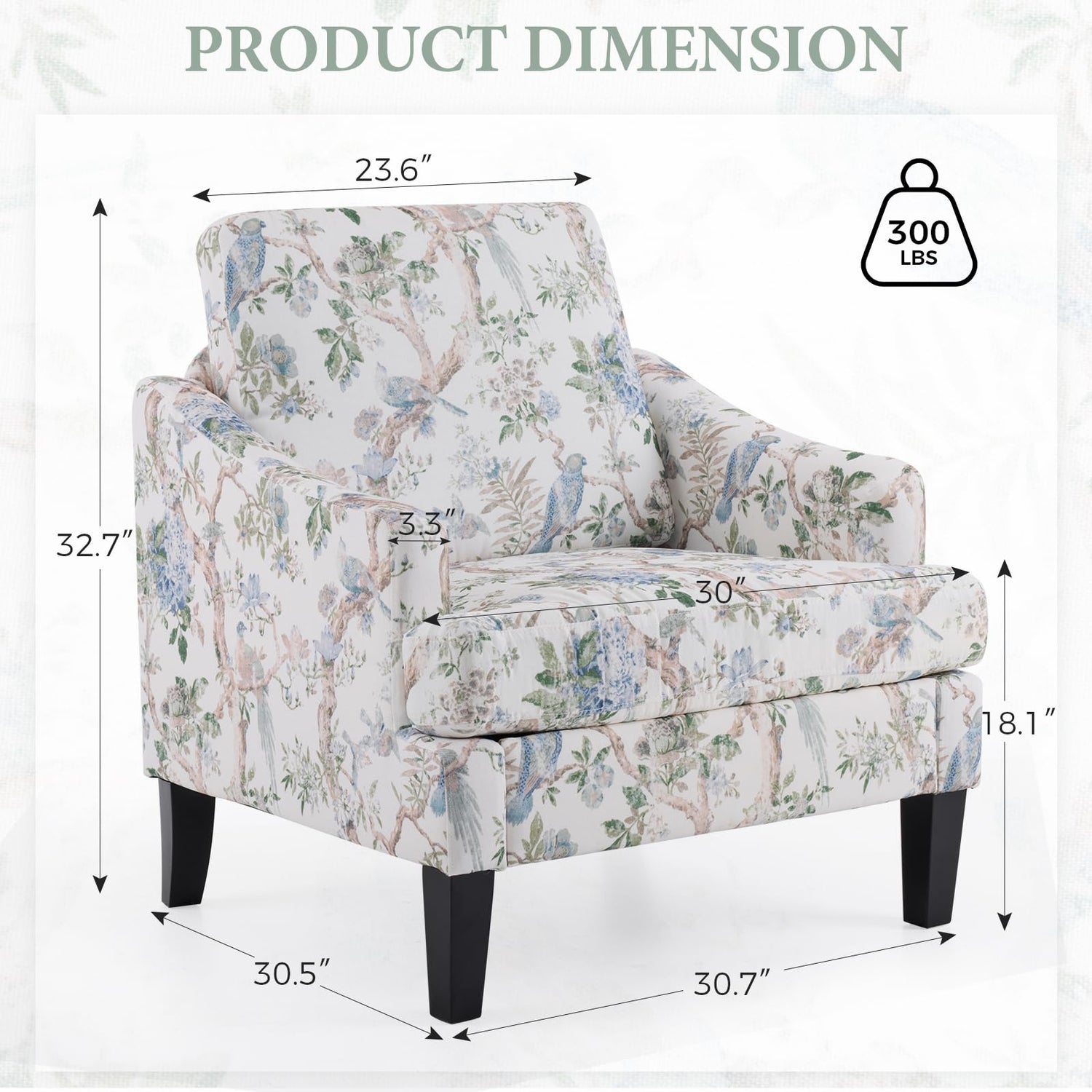 - 【HUMANIZED DESIGN】This living room chair features high-density, thick sponge padding, delivering firm support and exceptional resilience. Its ergonomic design, with a gently curved back and streamlined armrests, ensures optimal comfort and support. The wood leg structure is meticulously crafted to align with the ideal seated posture, providing enhanced stability, supports up to 350 pounds, and is designed for long-lasting durability.