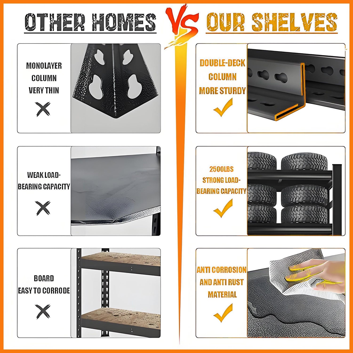 - 【Pgraded Materials for Stable Load-Bearing Capacity】Compared with the fragile load-bearing characteristics of other garage shelves in the market, we have upgraded the material of the panels and adopted a double-layer design for the columns. While ensuring a load-bearing capacity of 500 pounds per layer, the safety and stability of the shelves have been strengthened, greatly extending the product's service life