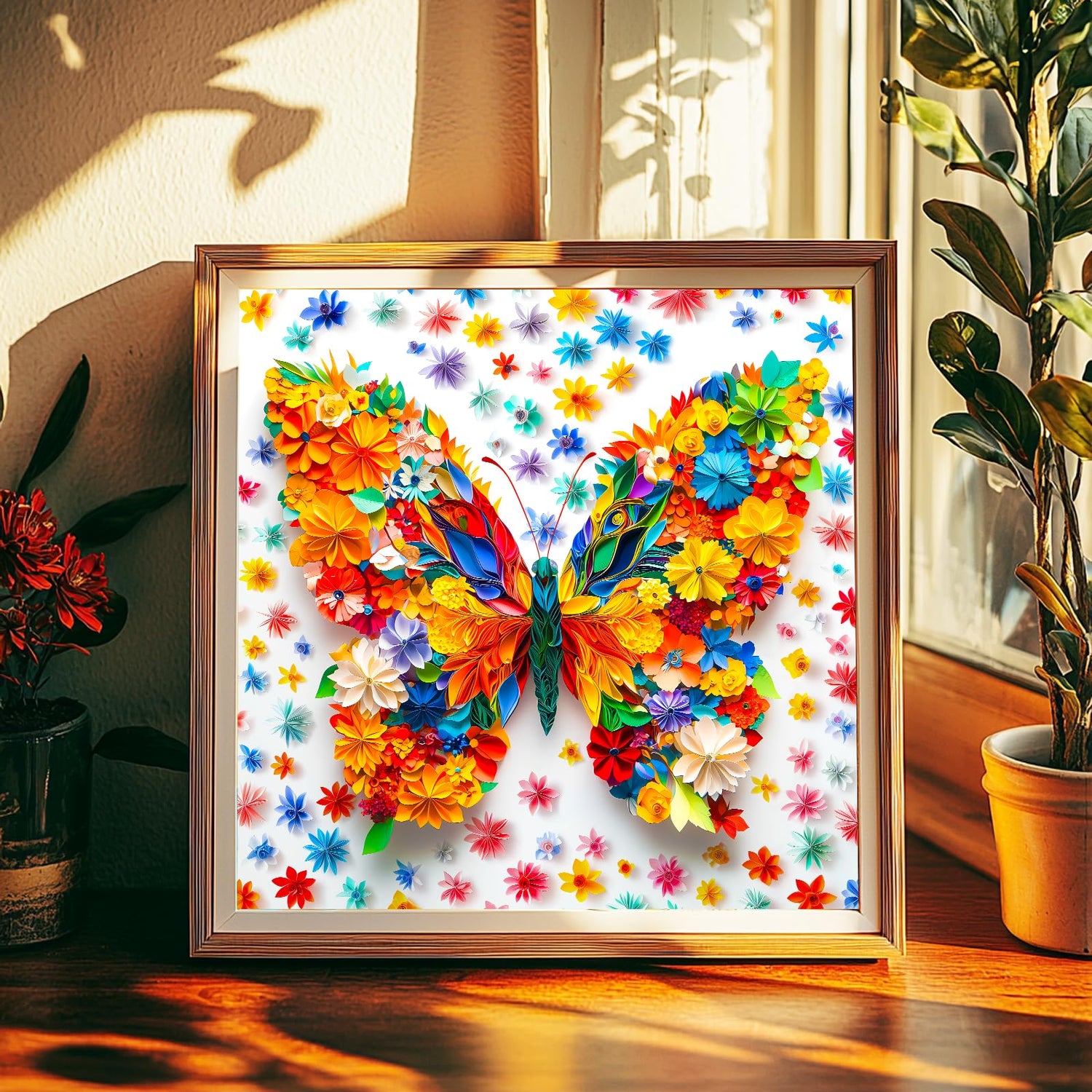 Bgraamiens Puzzle-Paper Art Butterfly-1000 Pieces Paper Flower Butterfly Puzzle for Adults, Unique Flowers Art Puzzle, Impossible Puzzle Color Challenge Puzzle for Adults