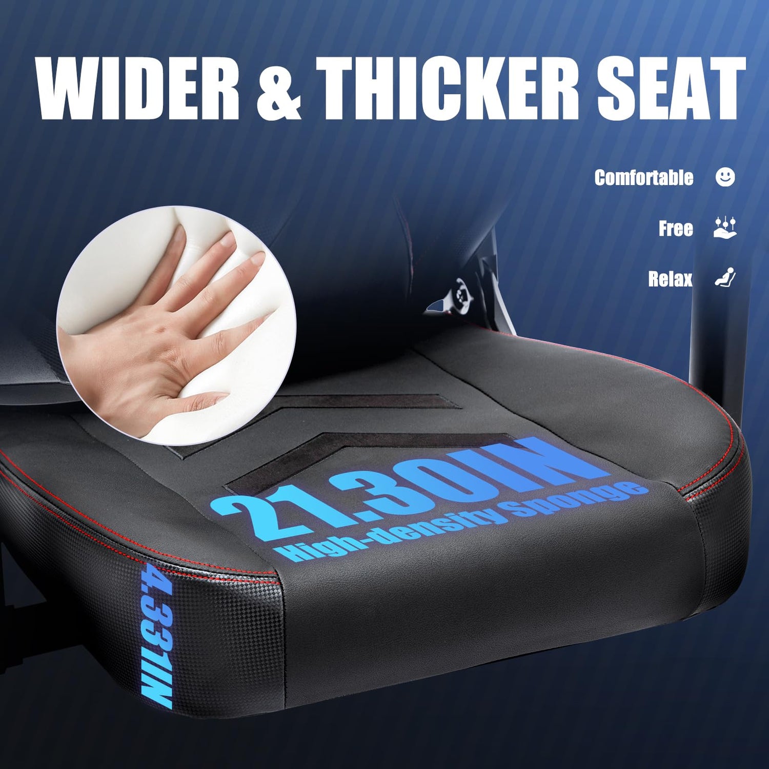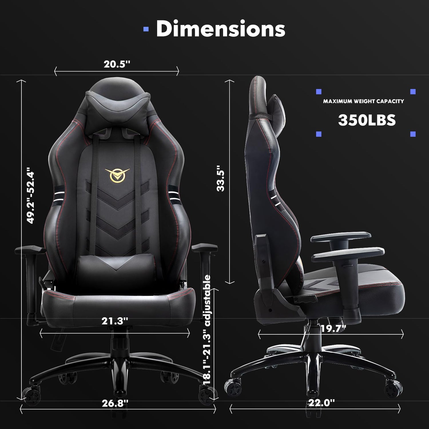 - ⏩ EXTRA LARGE, EXTRA COMFORT--Specially designed for the big and tall person, supports up to 350 pounds. Ergonomically designed with an enlarged backrest and thick seat (seat size: 20D" X 24W", 5" thick) that gently wraps around your body to create full body immersion. A first class seating experience allowing you to stay comfortable during long hours of work, study, or gaming