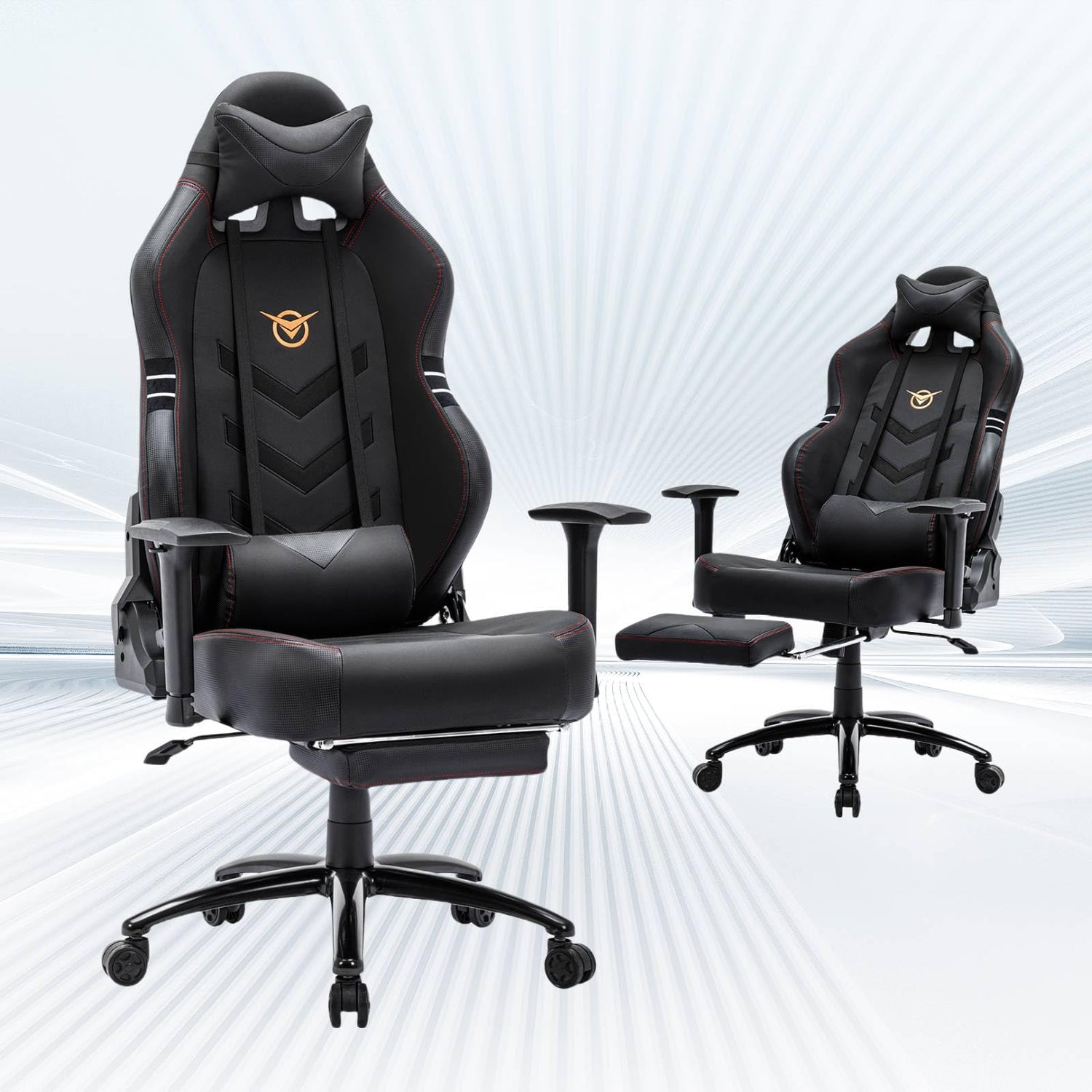 - ⏩HIGH-END MATERIALS--Not all artificial leather is created equal. This e-sport chair is upholstered in sweat-proof PU leather, which not only feels good by touch, moreover, the addition of 3D carbon elements makes the chair more eye-catching and stylish.